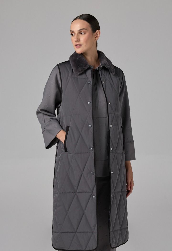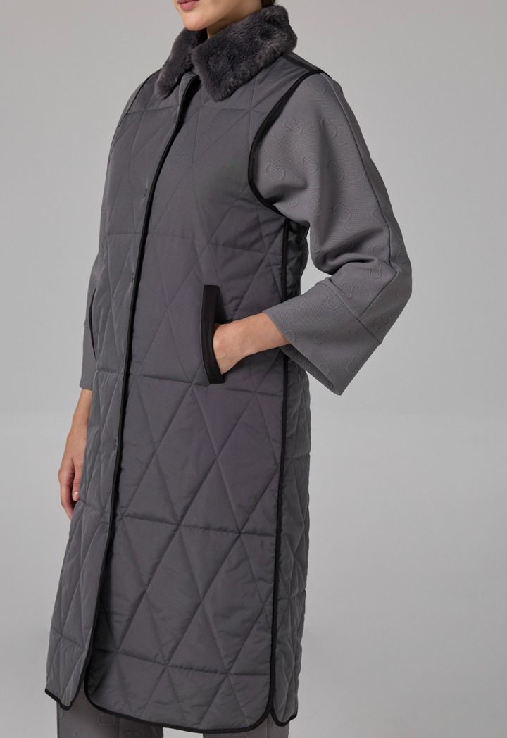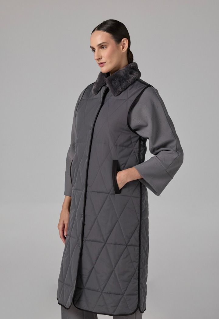 Design: Contrast, Faux Fur, Attached Lining, Pockets, Stitched Detail, Quilted