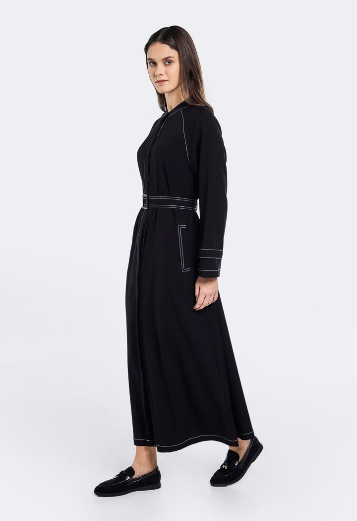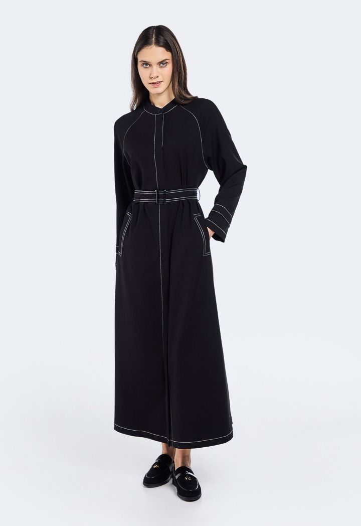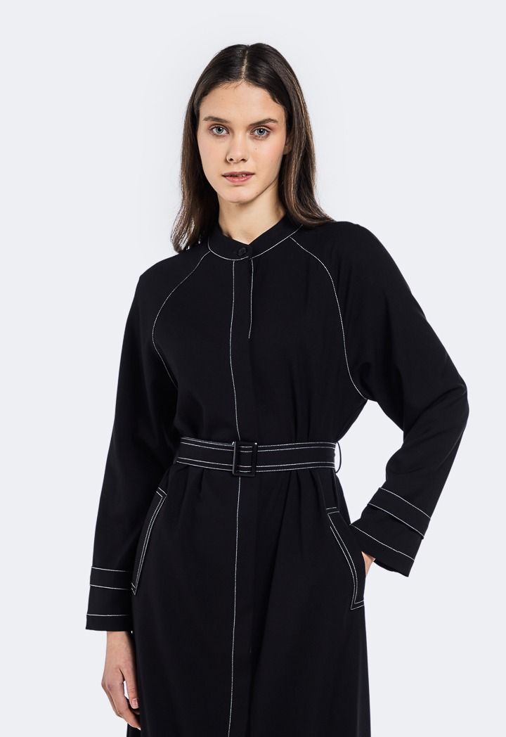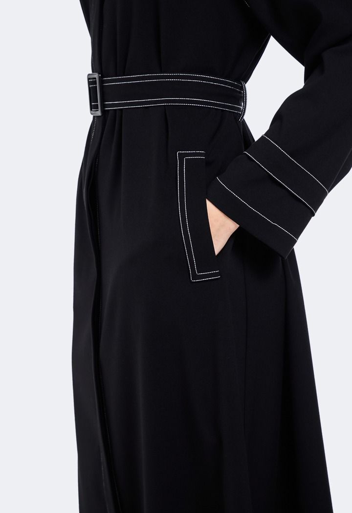 Design: Contrast Stitch, Belted, Side Pockets