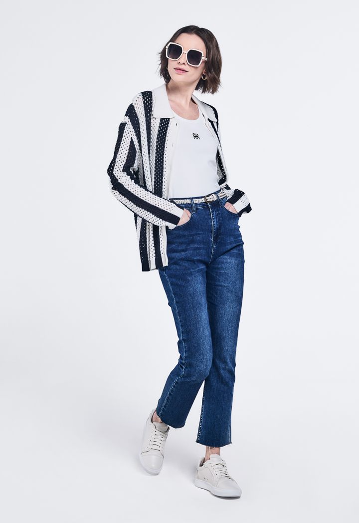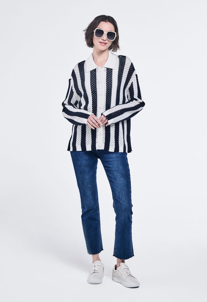 Design: Contrast, Striped, Knitted, Drop Shoulder, Side Slit, Relaxed Fit