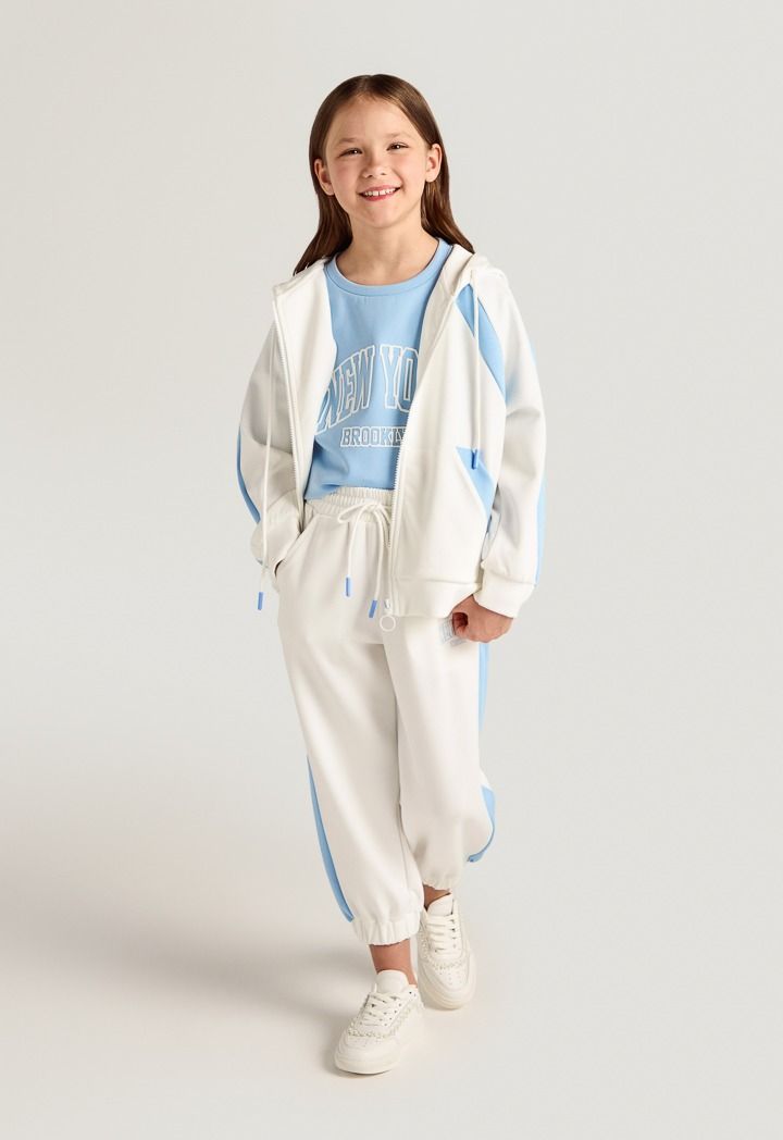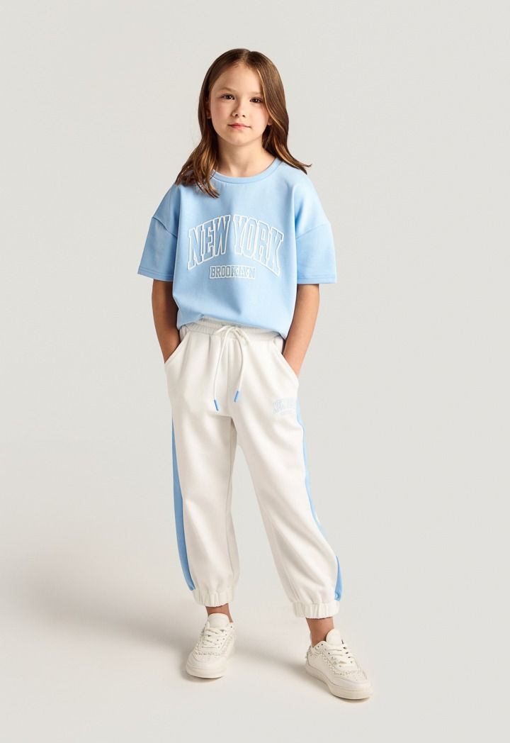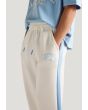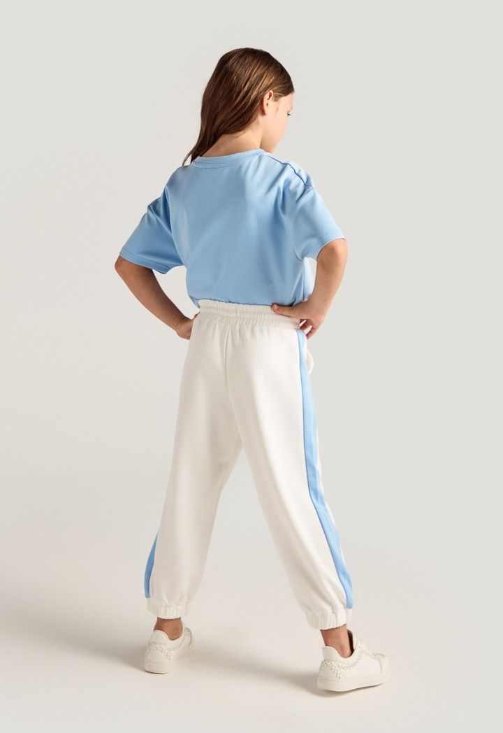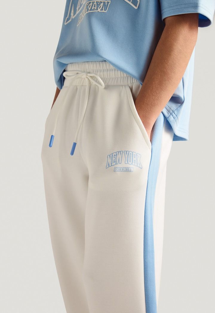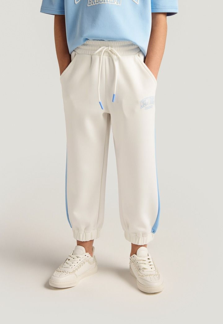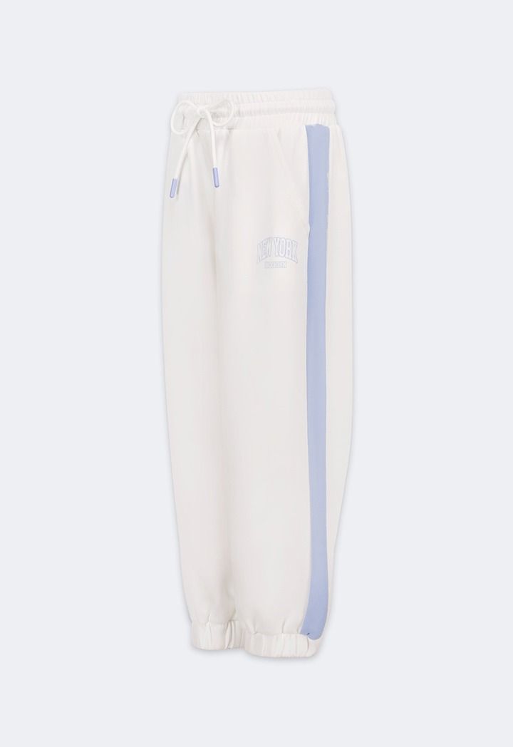 A comfortable pair of sweatpants that features a contrast design and gathered hems.