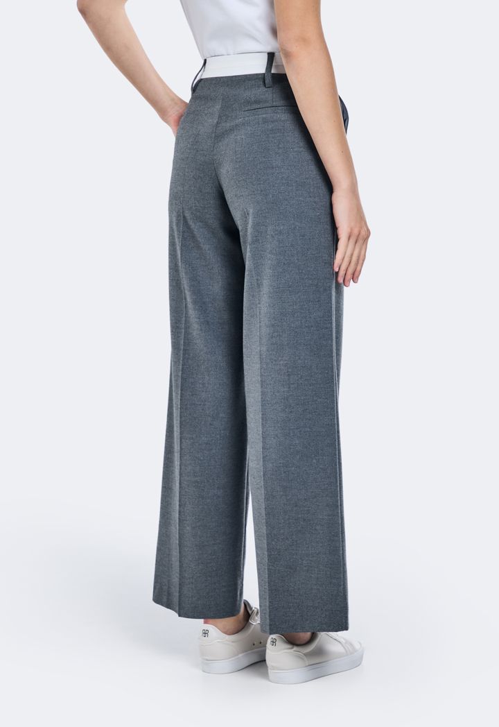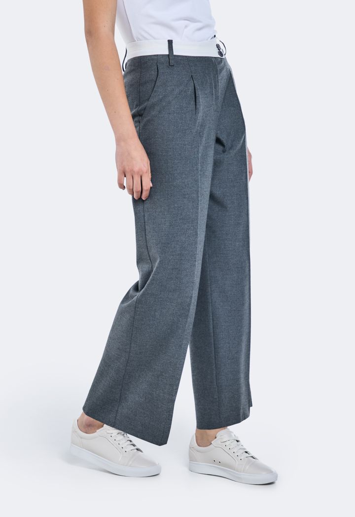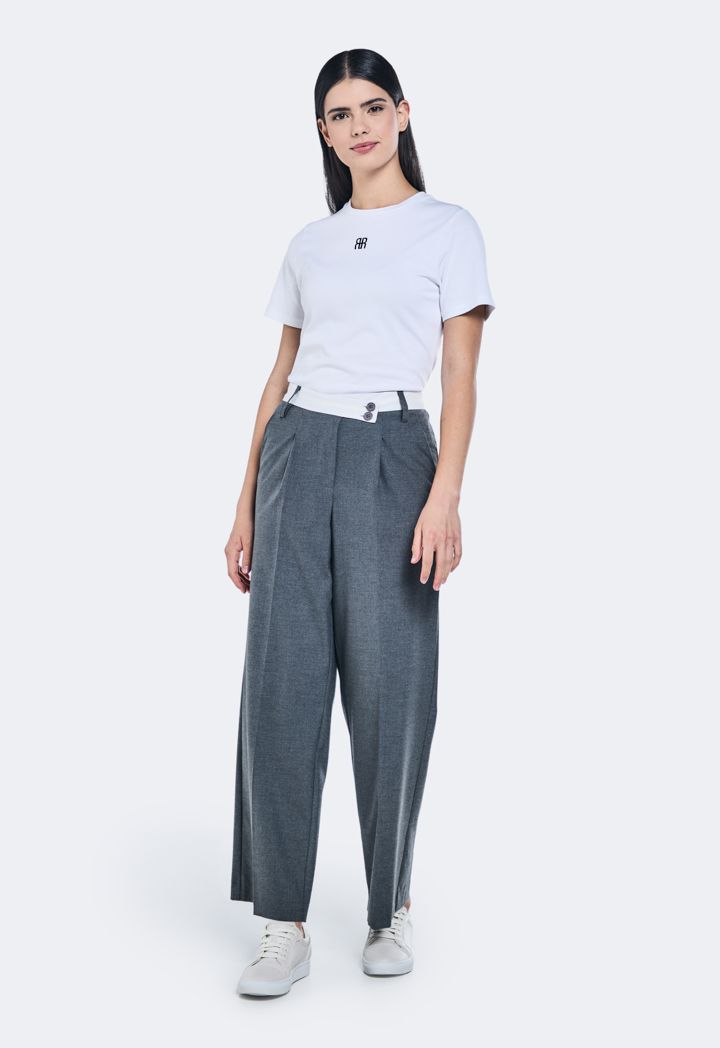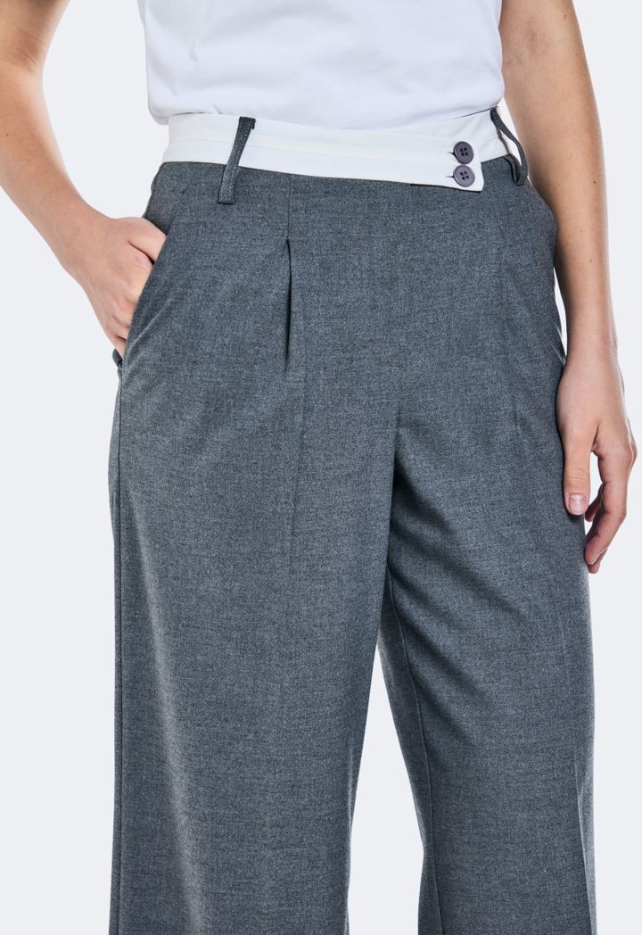 Contrast Waistband Wide Leg Trousers |