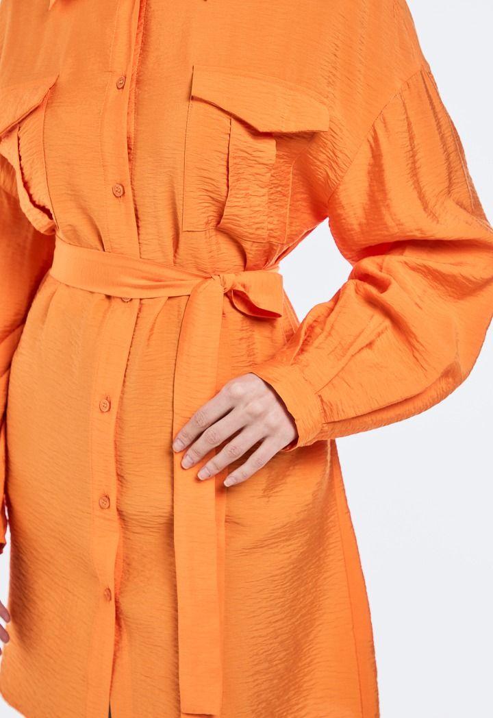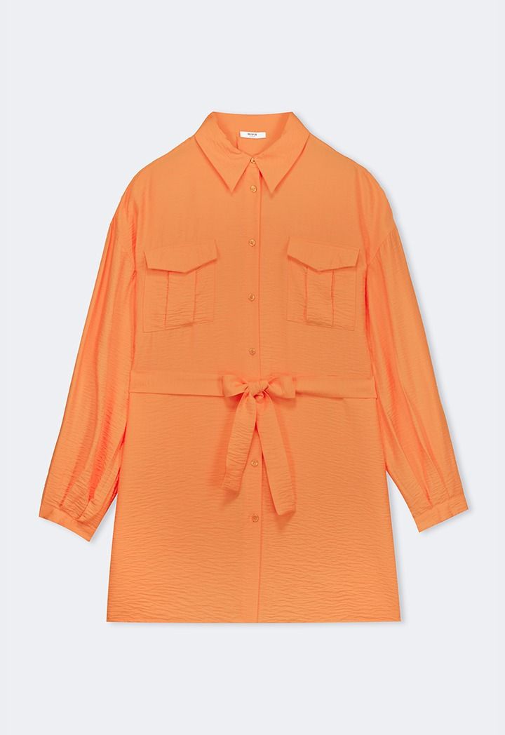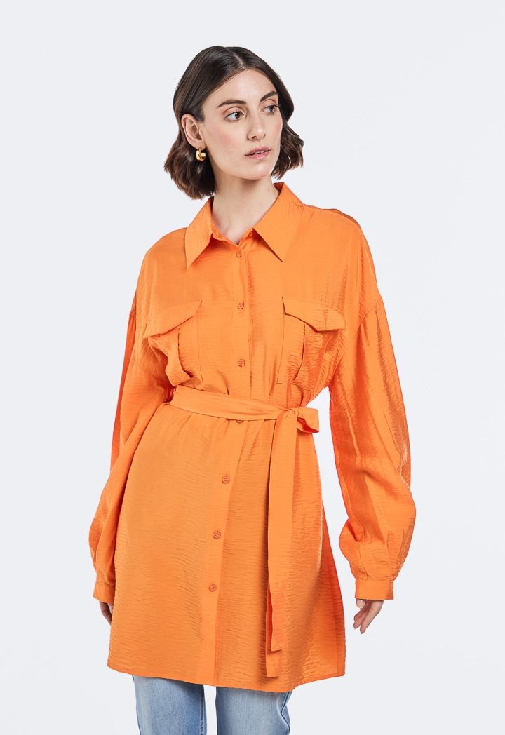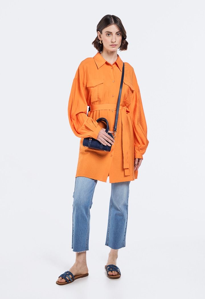 Design: Solid, Crinkled, Drop Shoulder, Flap Pockets, Belted