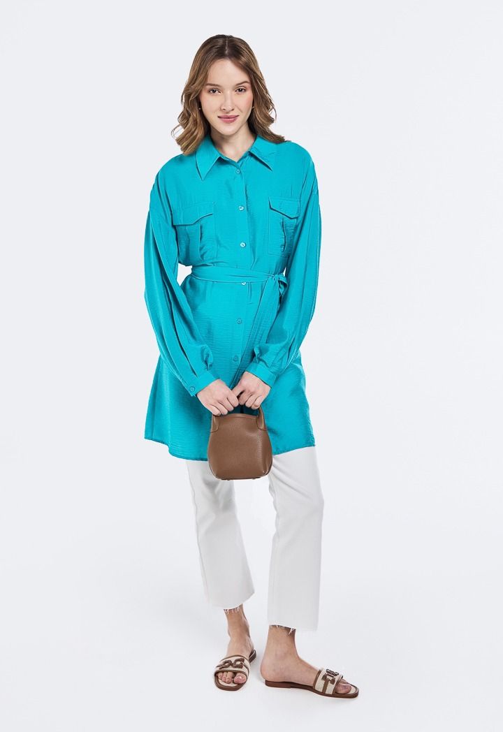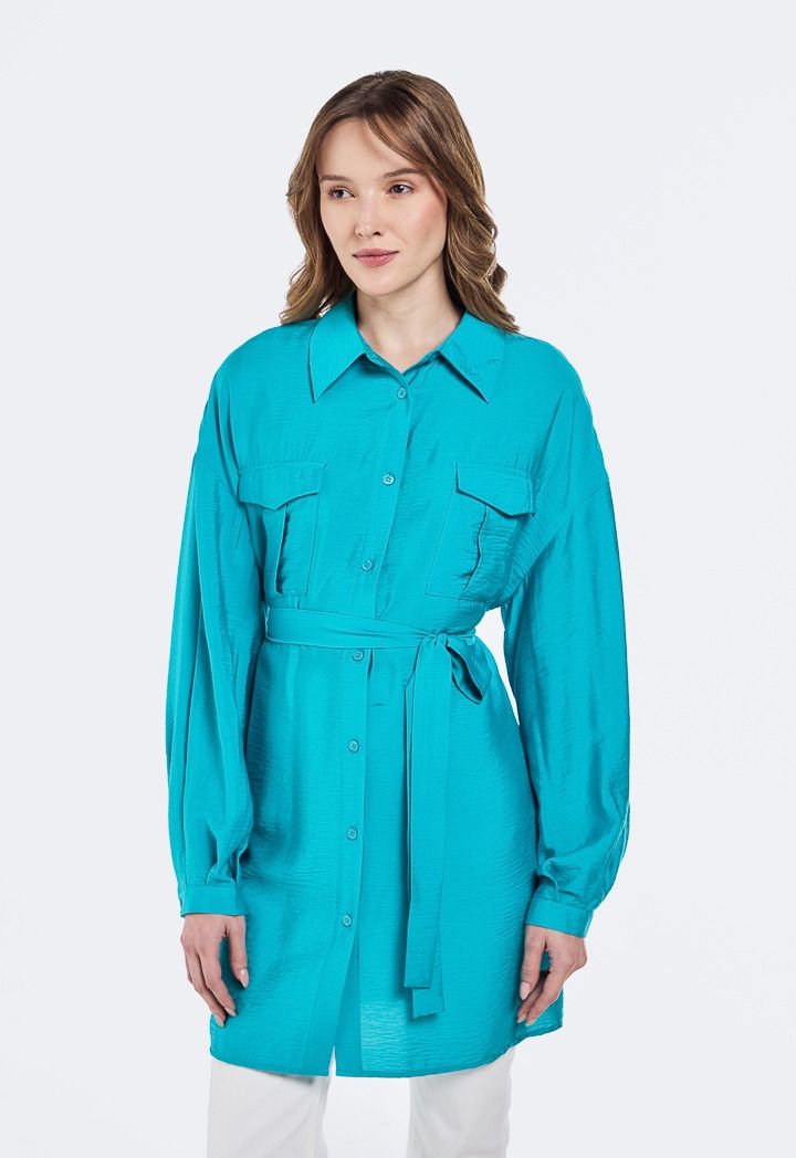 Crinkled Belted Long Shirt |