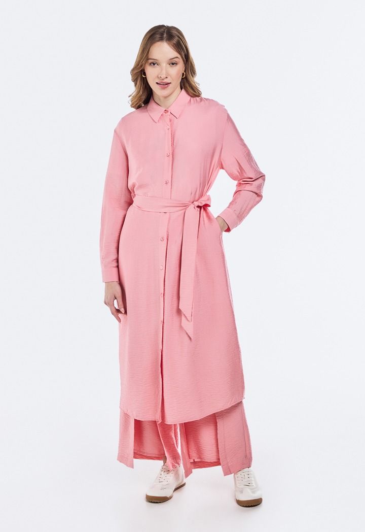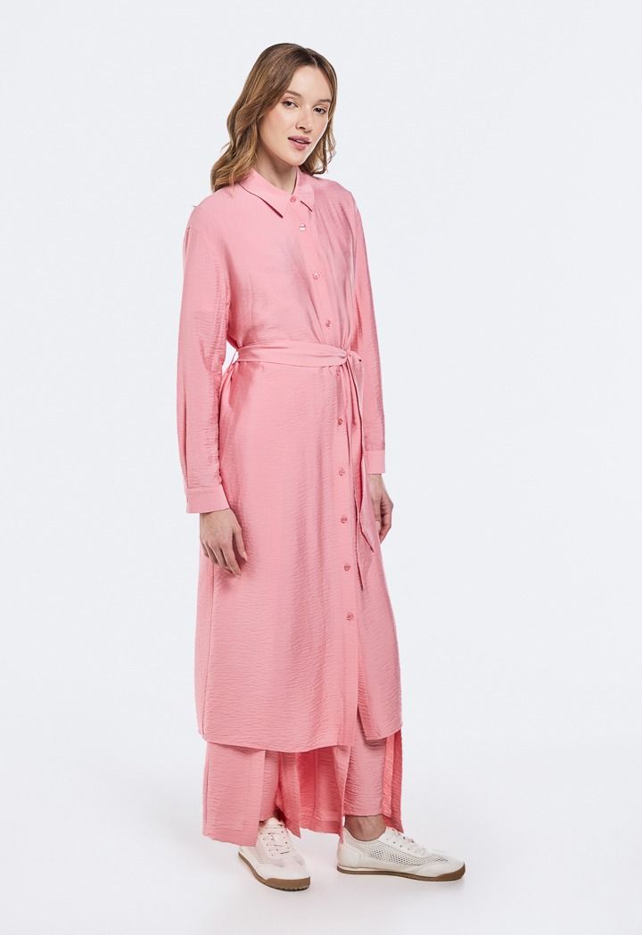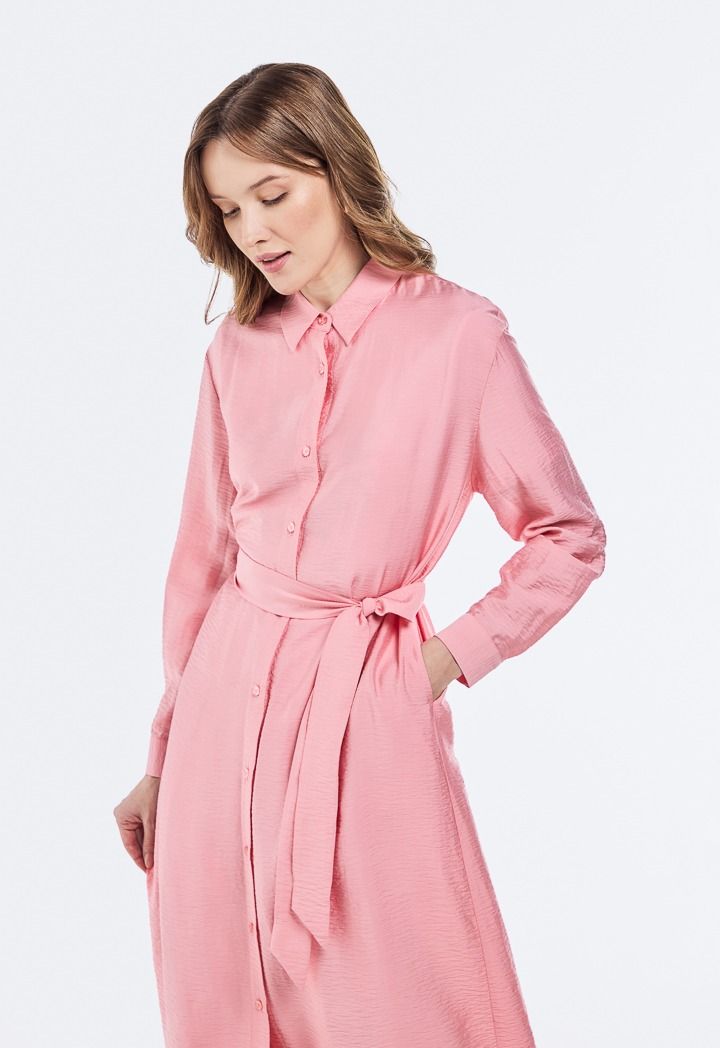 Crinkled Belted Shirt Dress |