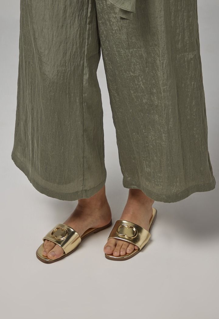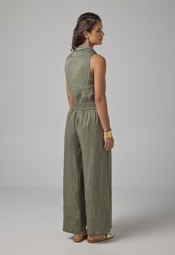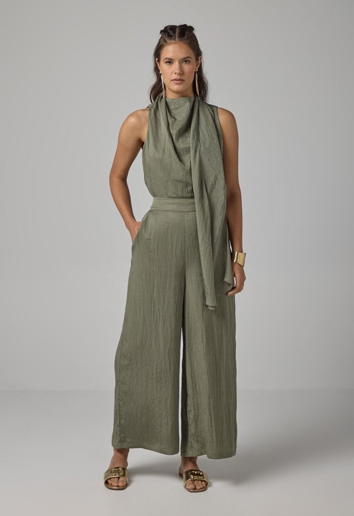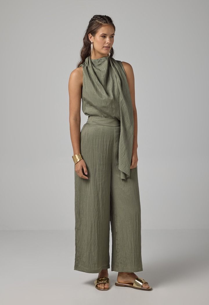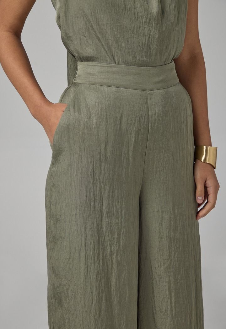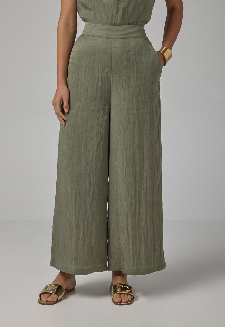 Design: Solid, Side Pockets, Crinkled, Wide Leg, Attached Lining