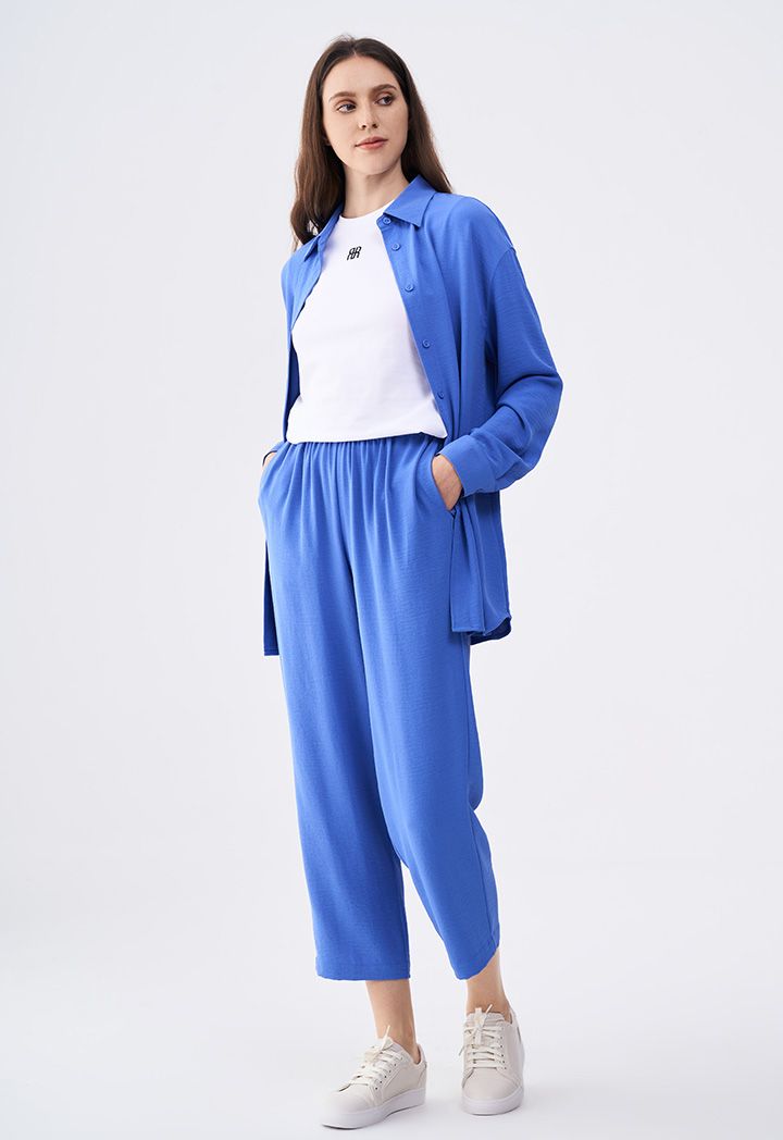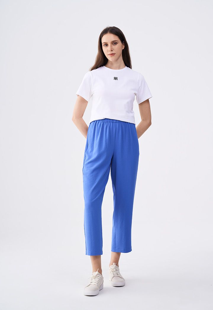 Design: Solid, High Waist, Side Pockets, Peg Leg, Crinkled