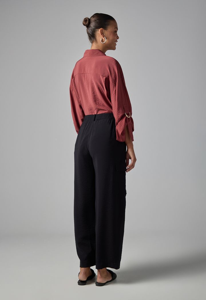 Design: Solid, High Waist, Pockets, Wide Leg, Crinkled