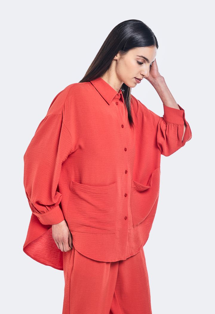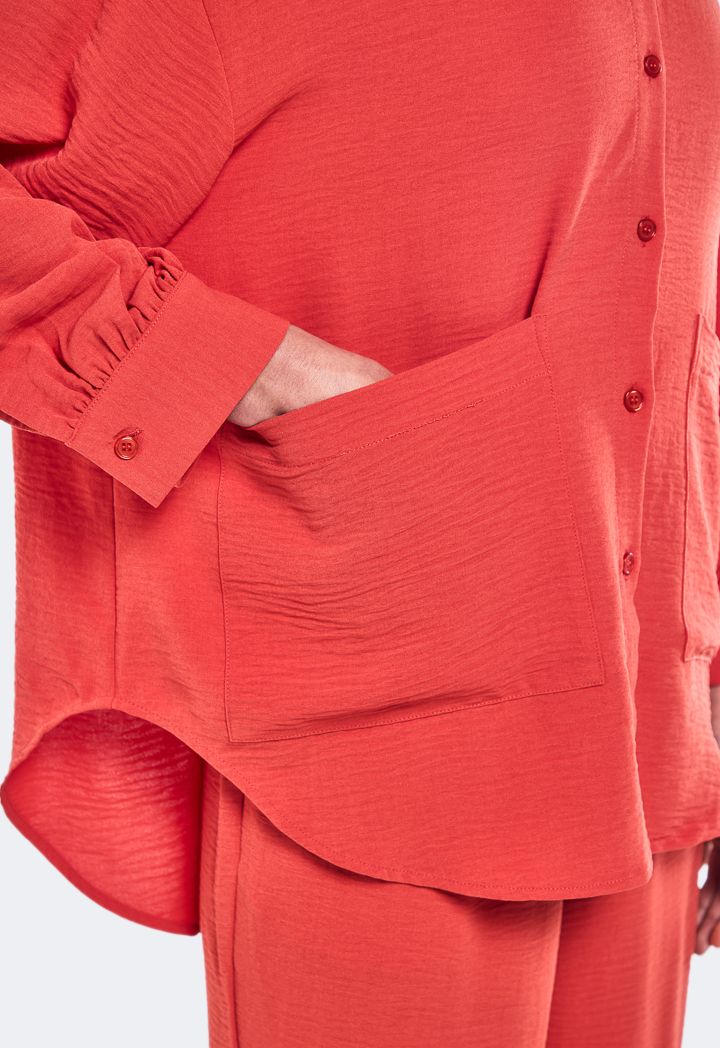 Design: Solid, Crinkled, High Low, Loose Fit, Drop Shoulder, Patch Pockets