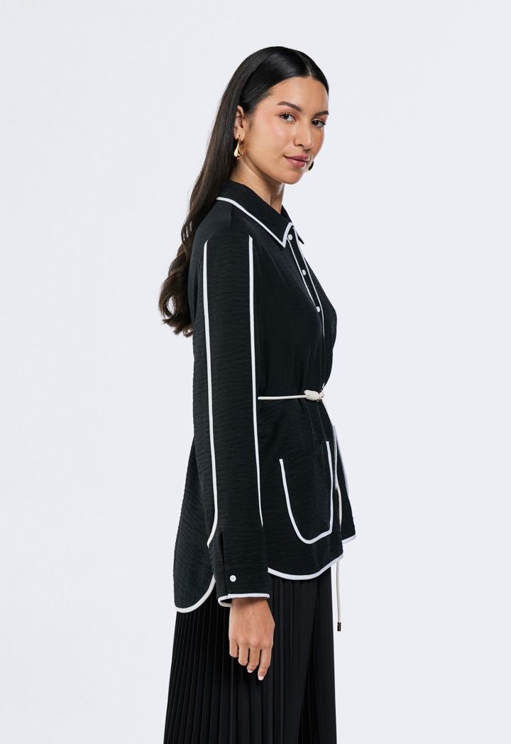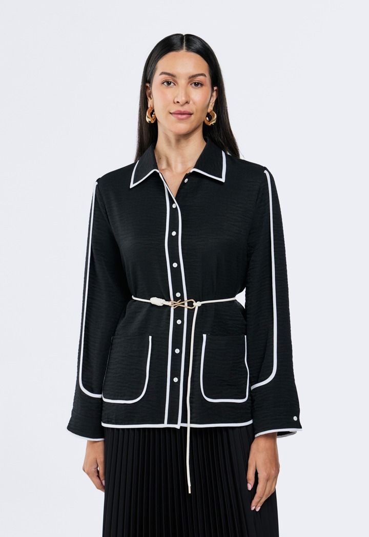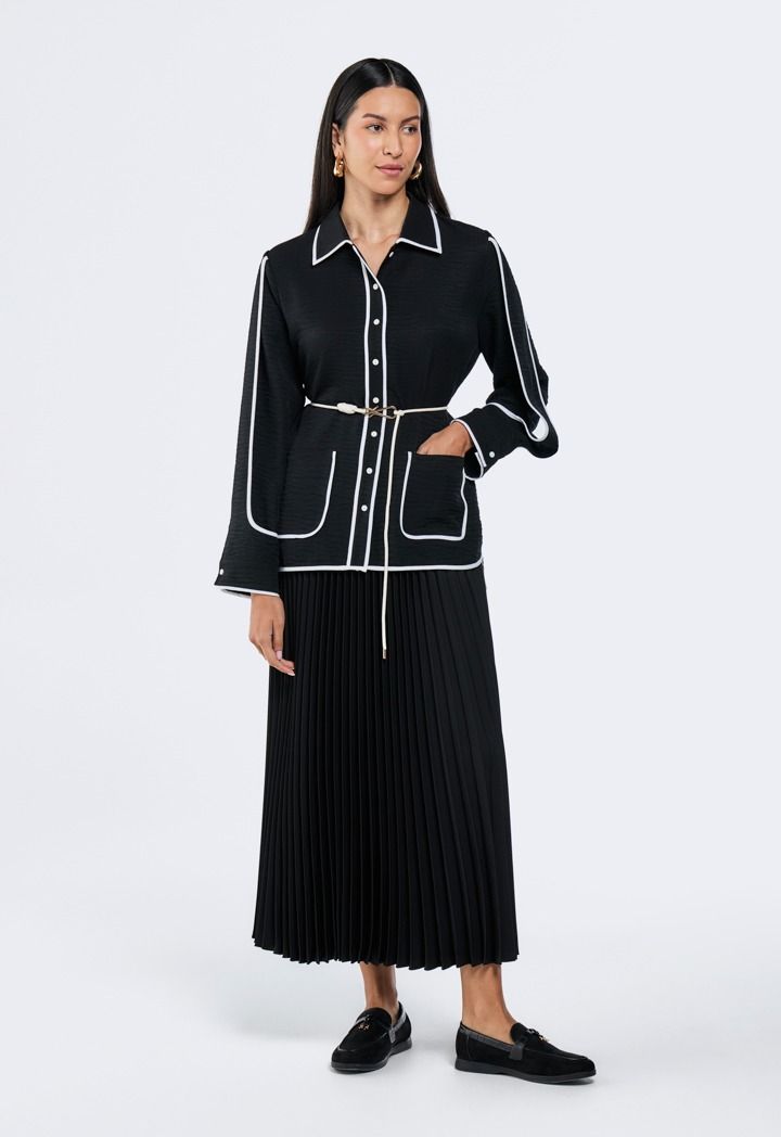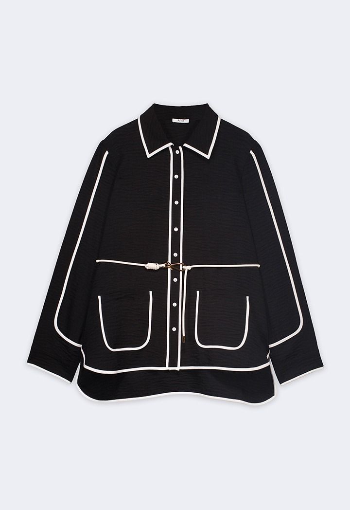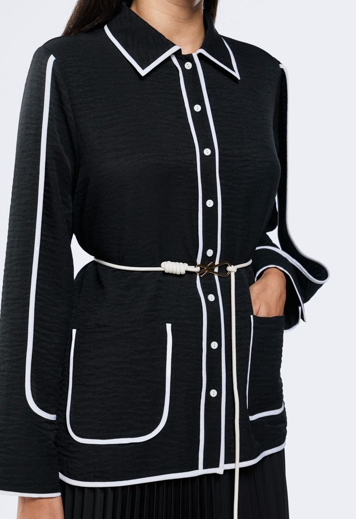 Design: Contrast, Crinkled, Patch Pockets, Rope Belt, High Low