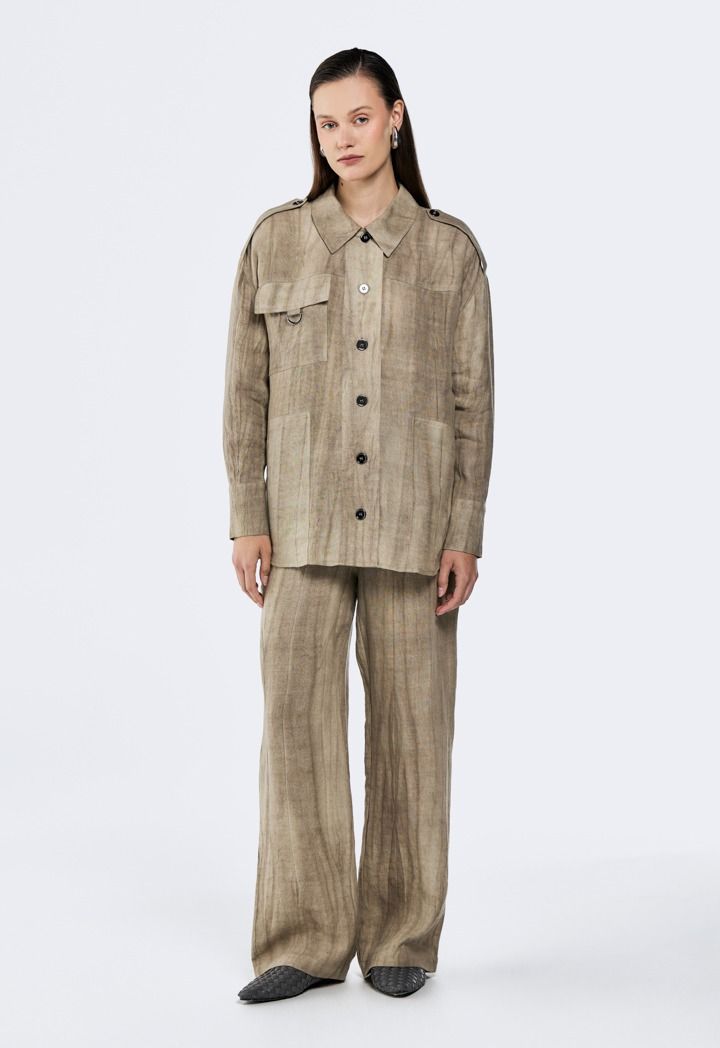 Design : Crinkled Linen, Drop Shoulder, Multi-Pocket