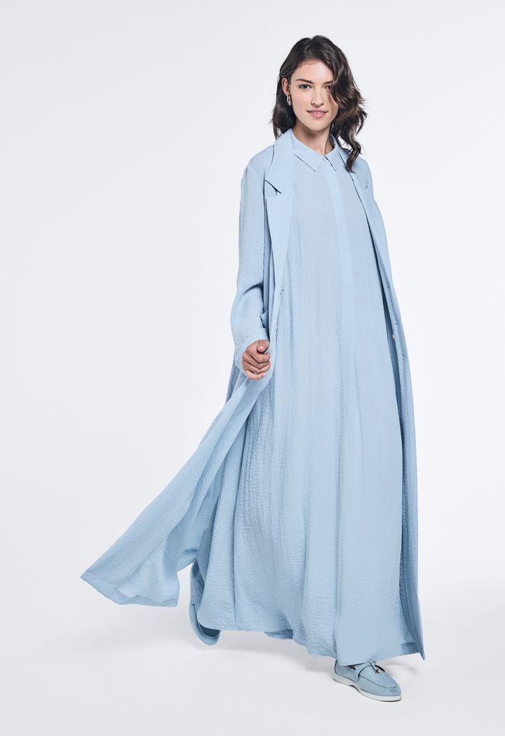 Look fabulous and Link fashion with relaxation by styling this crinkled dress with Abaya.