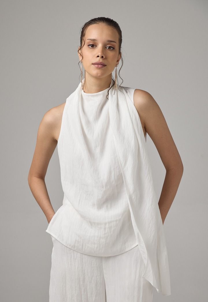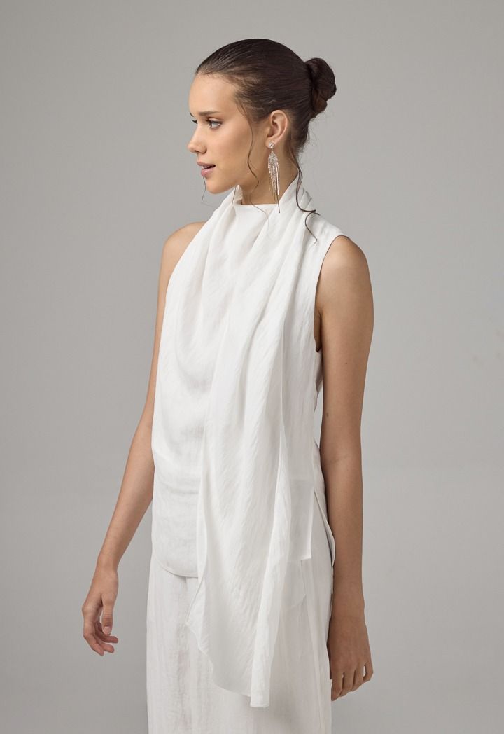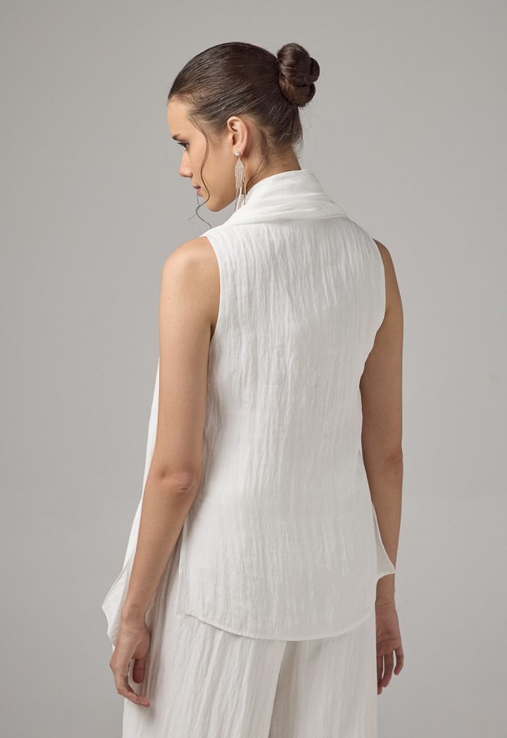 Design: Solid, Crinkled, Undetachable Scarf, Attached Lining, Side Slit At Hem
