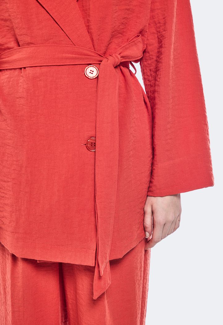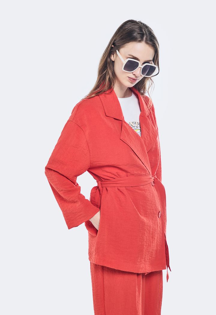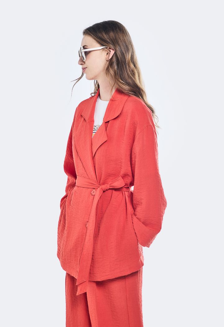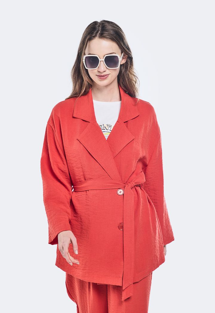 Design: Solid, Crinkled, Belted, Single Breasted, Side Pockets