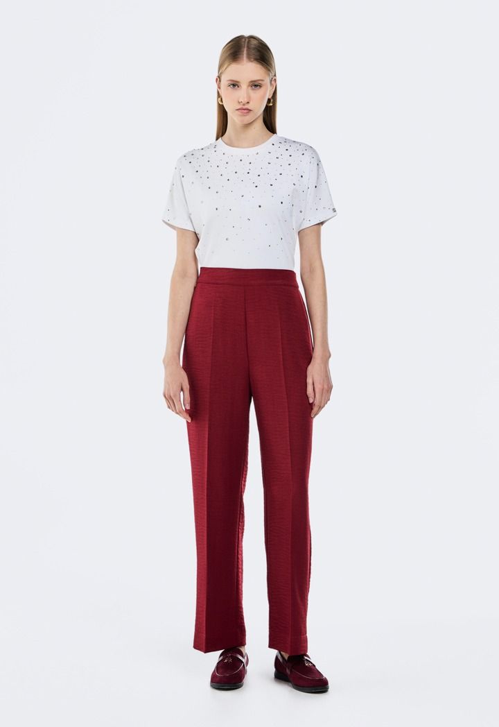 Design: Solid, High Waist, Side Pockets, Crinkled, Straight Cut