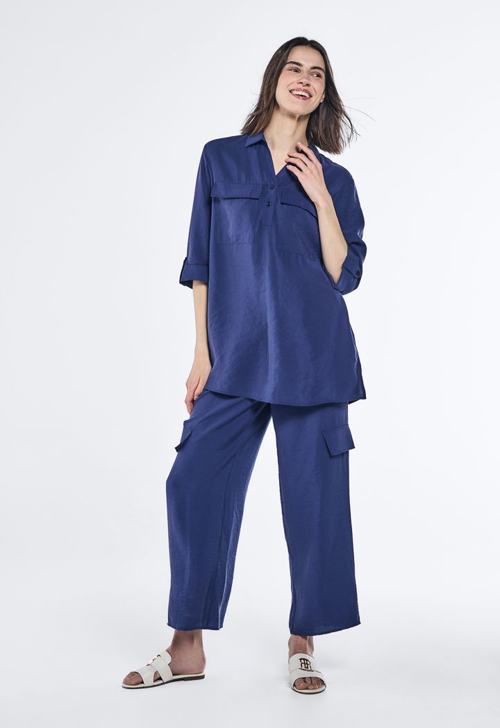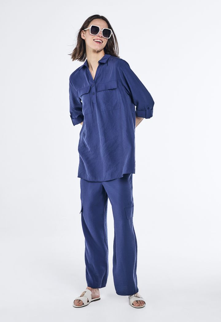 Design: Solid, Crinkled, Regular Fit, Flap Pockets