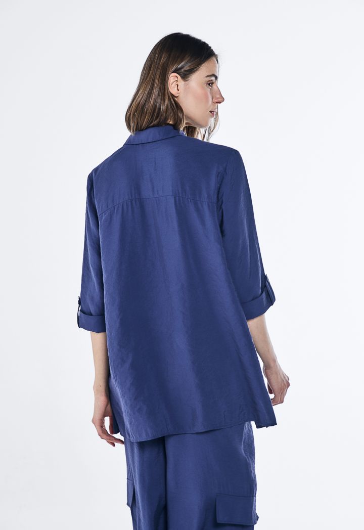Crinkled Three Quarter Sleeves Blouse |
