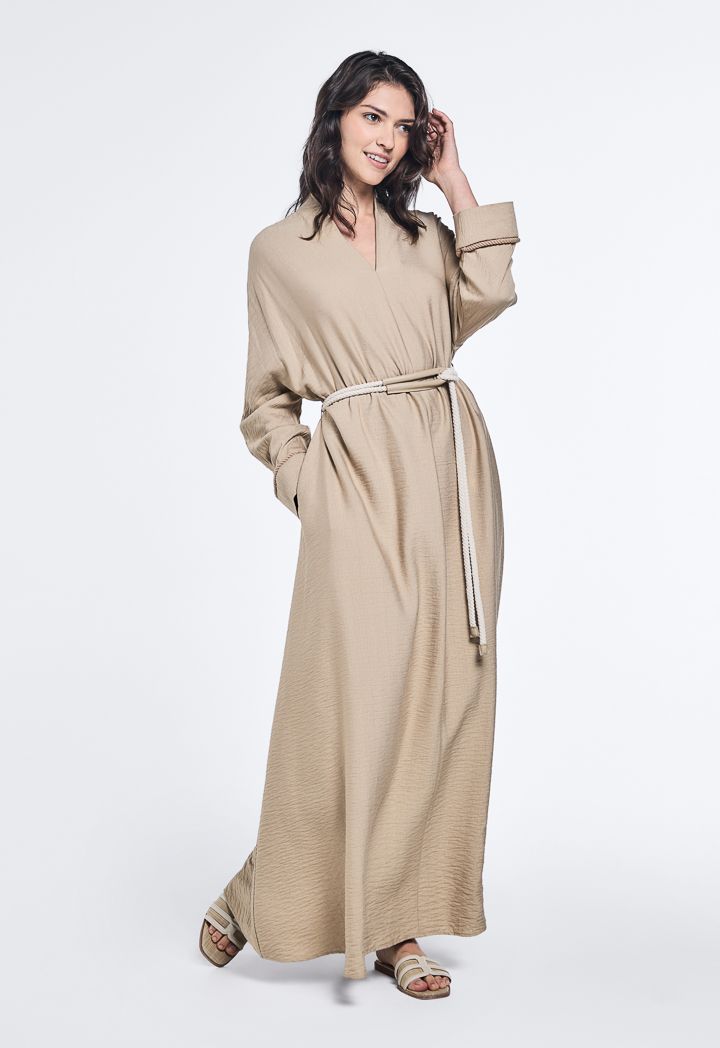 Crinkled Tie Rope Belt Dress |