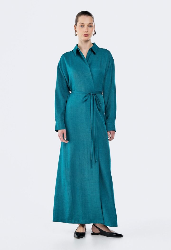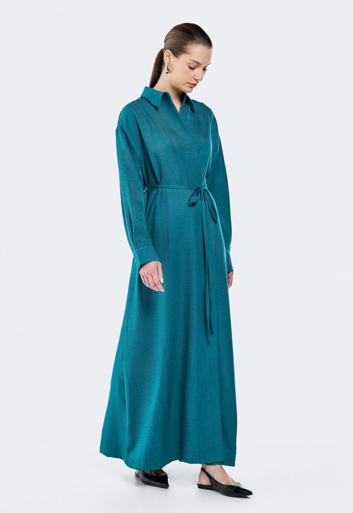 Crinkled Tie-Wasit Wrap Dress |