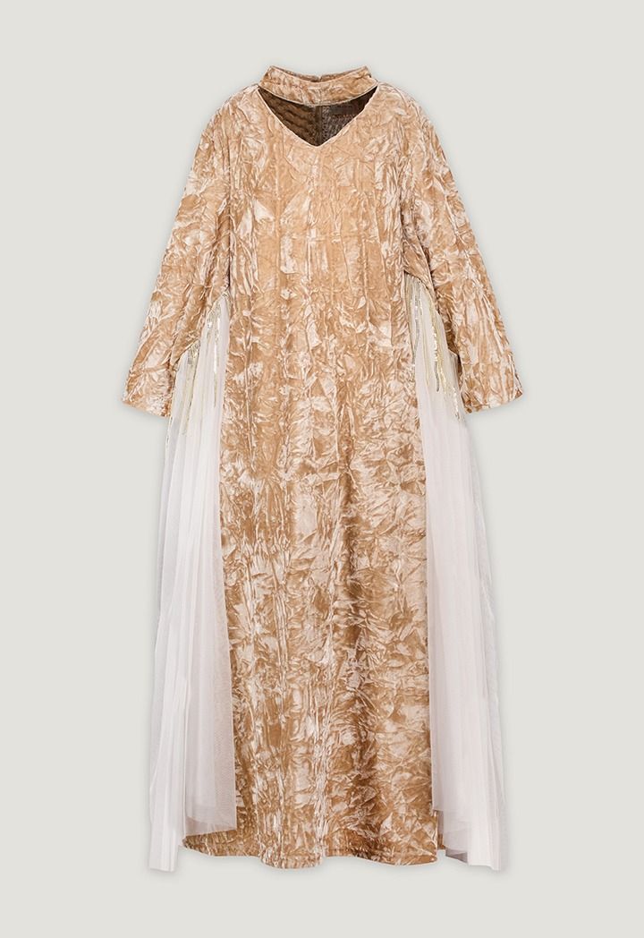 Crinkled Velvet Sequin Details Dress |