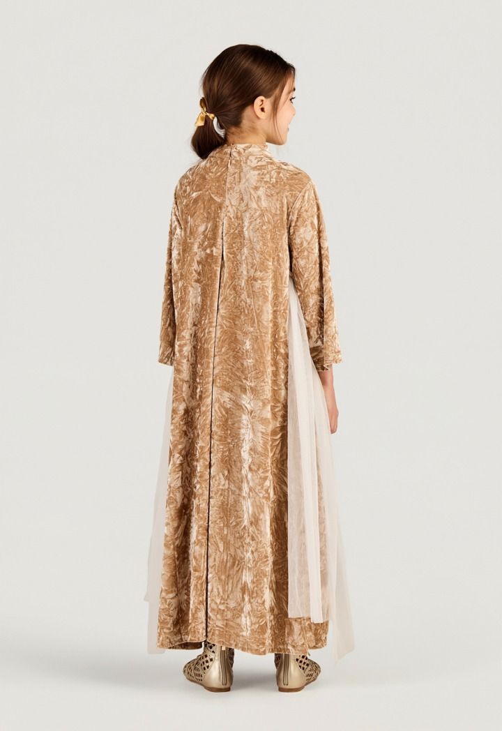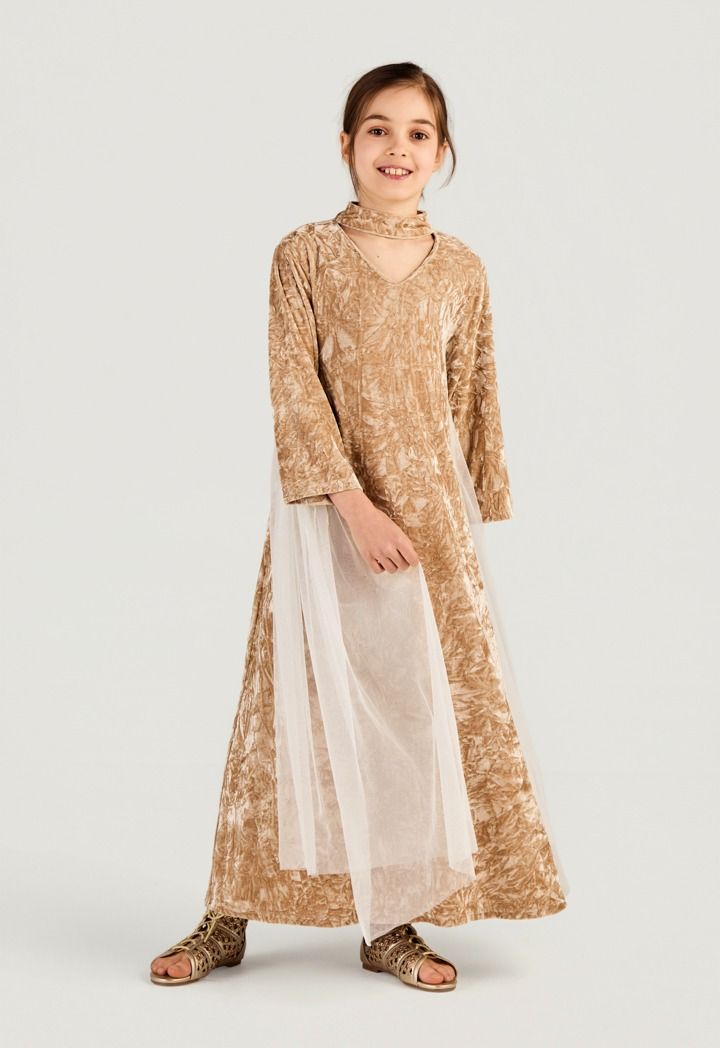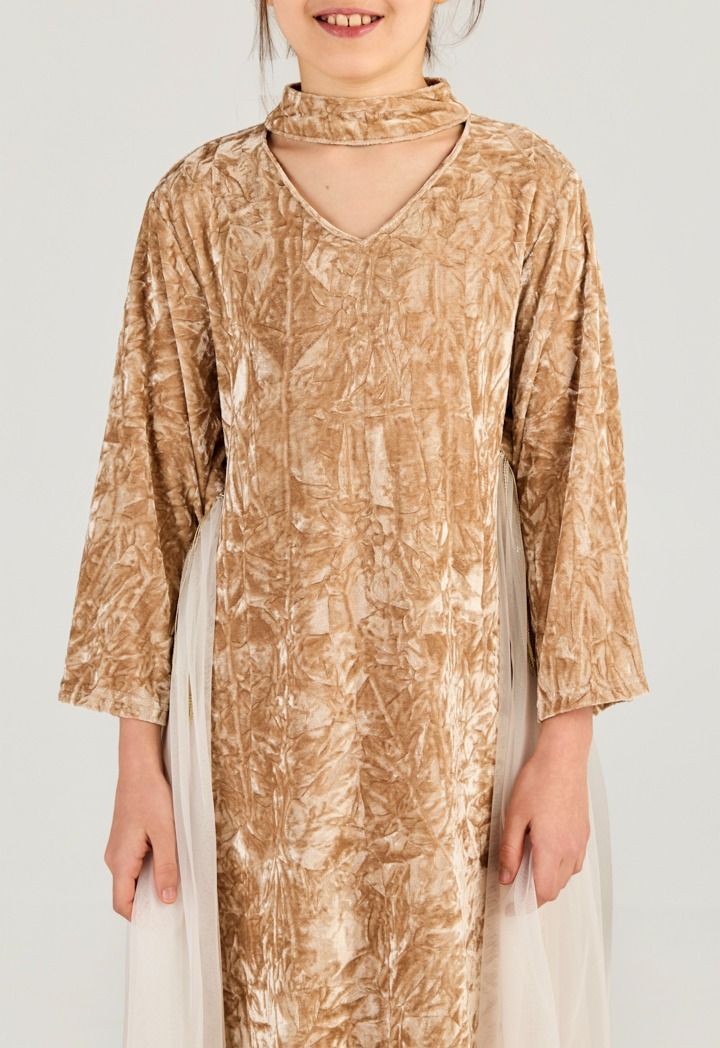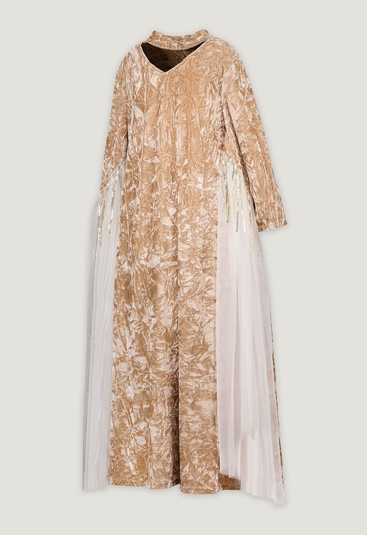 Design : Velvet, Crinkled, Embellished, Sequin Details, Side Mesh Overlay