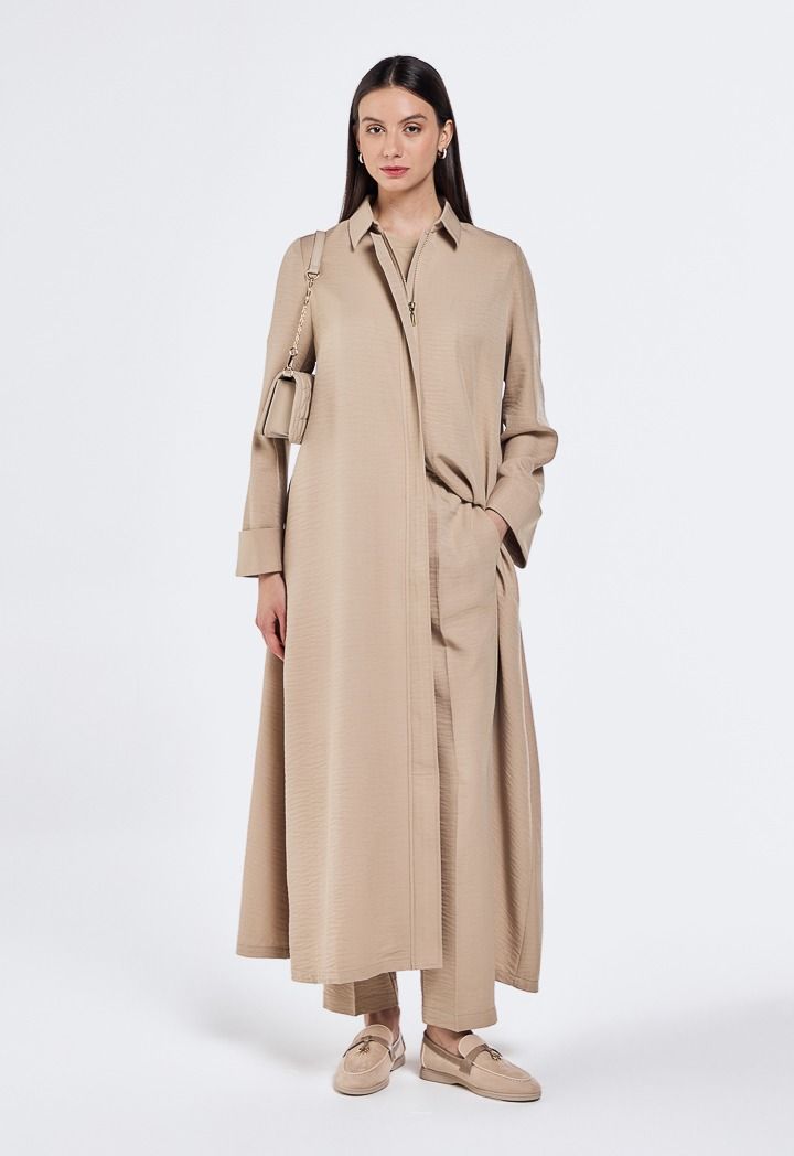 This Abaya is one of the newest rotations. Minimal yet contemporary, it features a metallic zip in the front, along a traditional and relaxed silhouette.