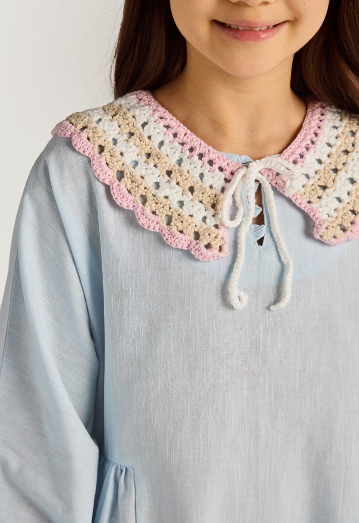 Flatter the shape of your body with this dress, featuring a detachable crochet collar design.