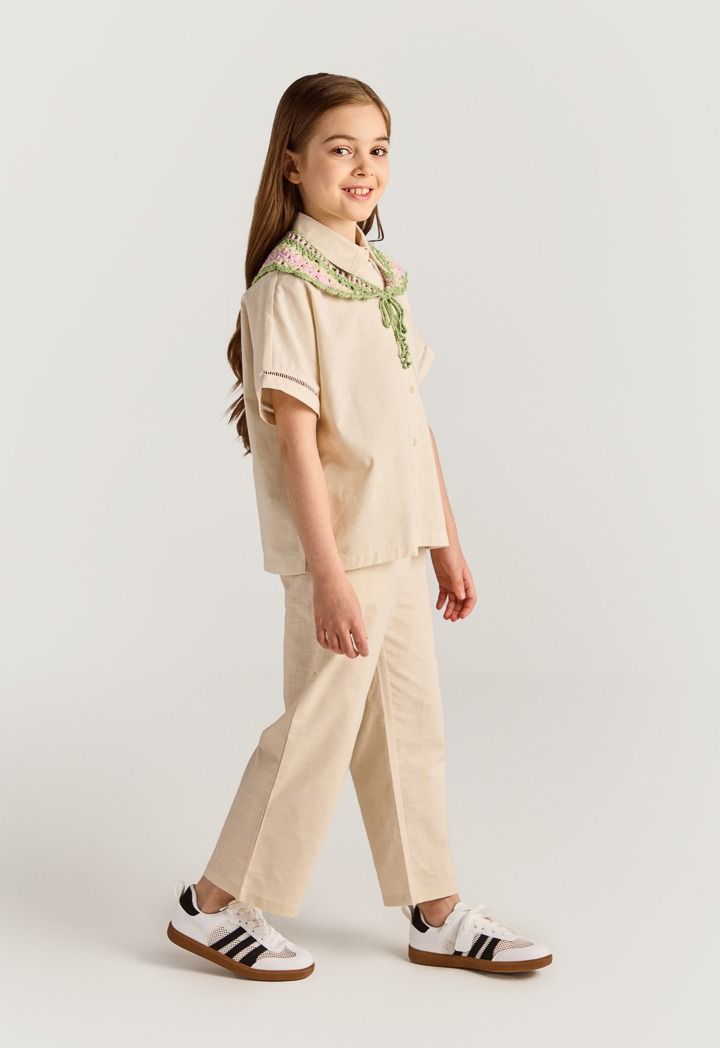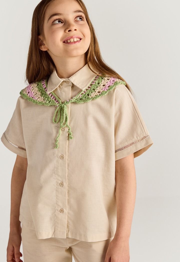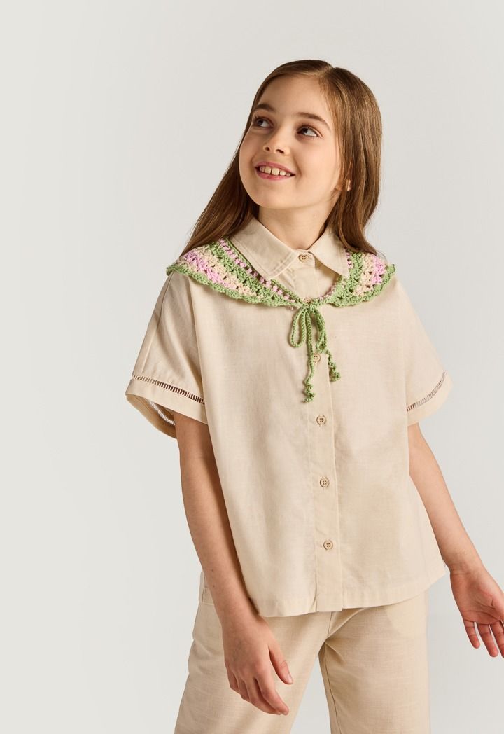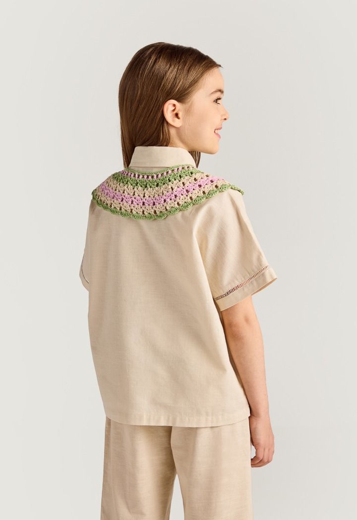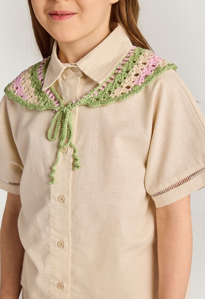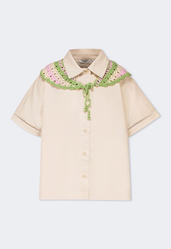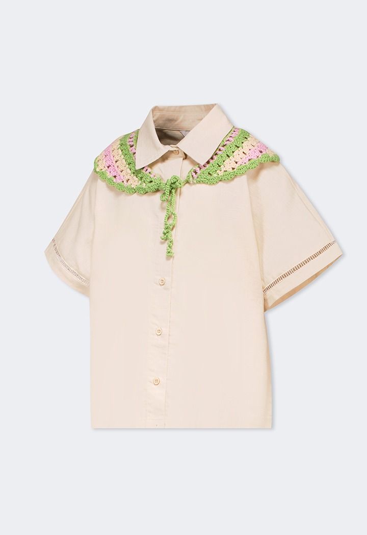 Flatter the shape of your body with this shirt, featuring a detachable crochet collar design.
