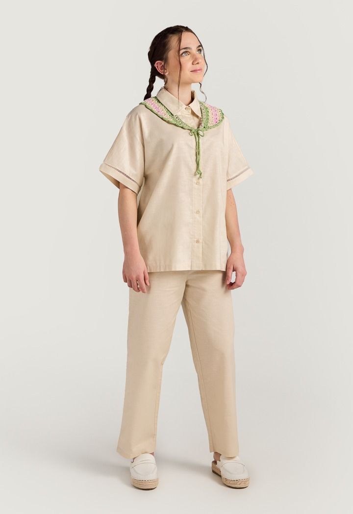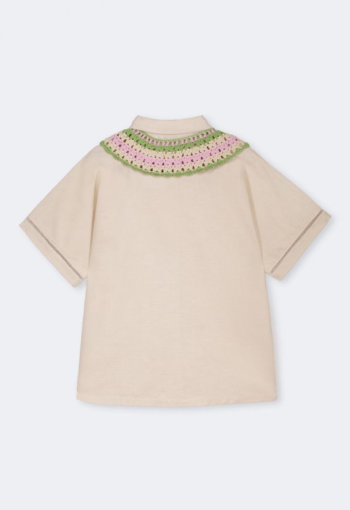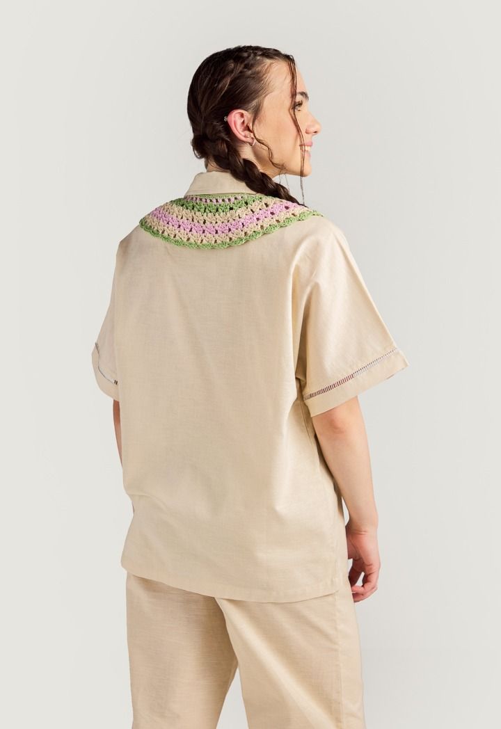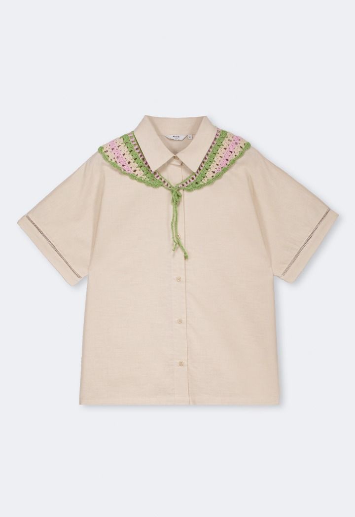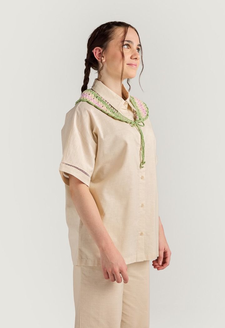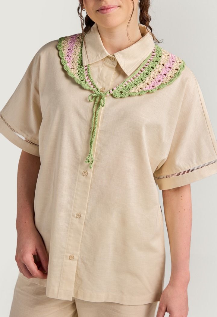 Flatter the shape of your body with this shirt, featuring an detachable crochet collar design.