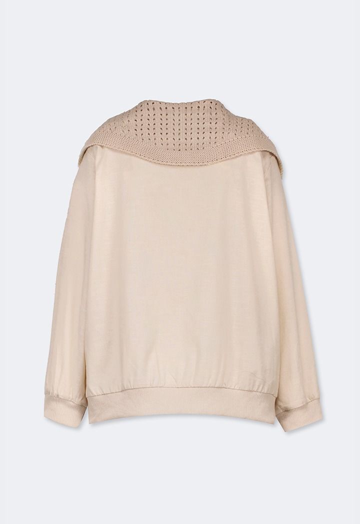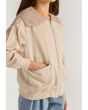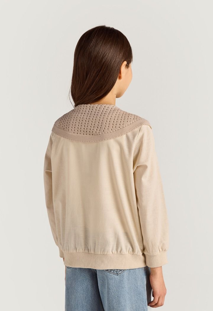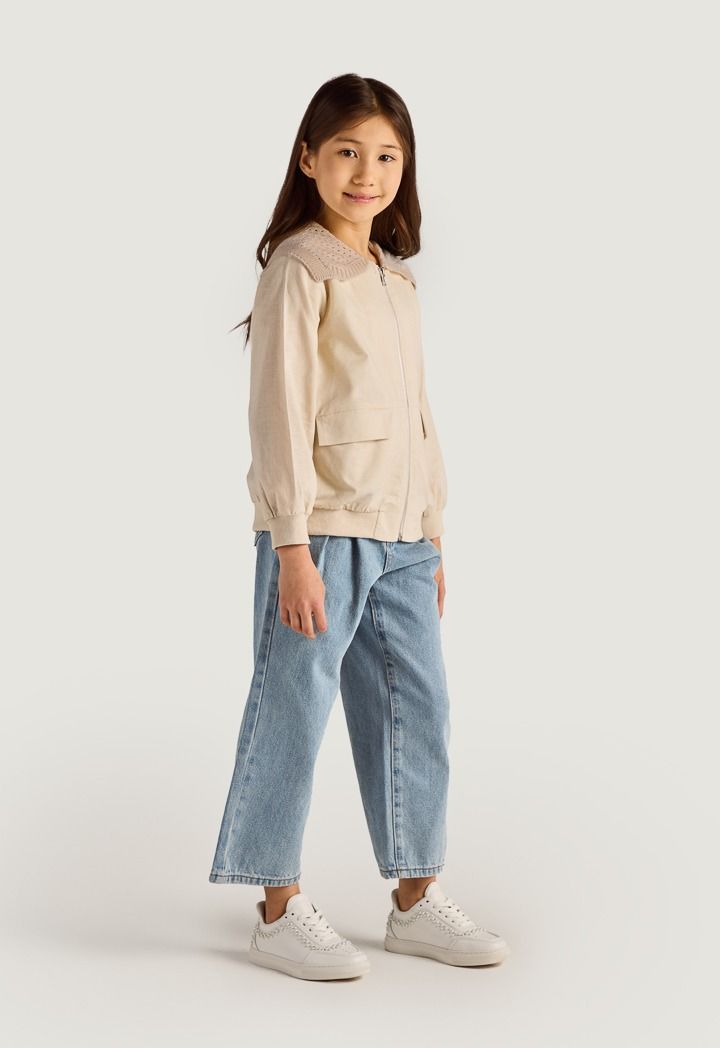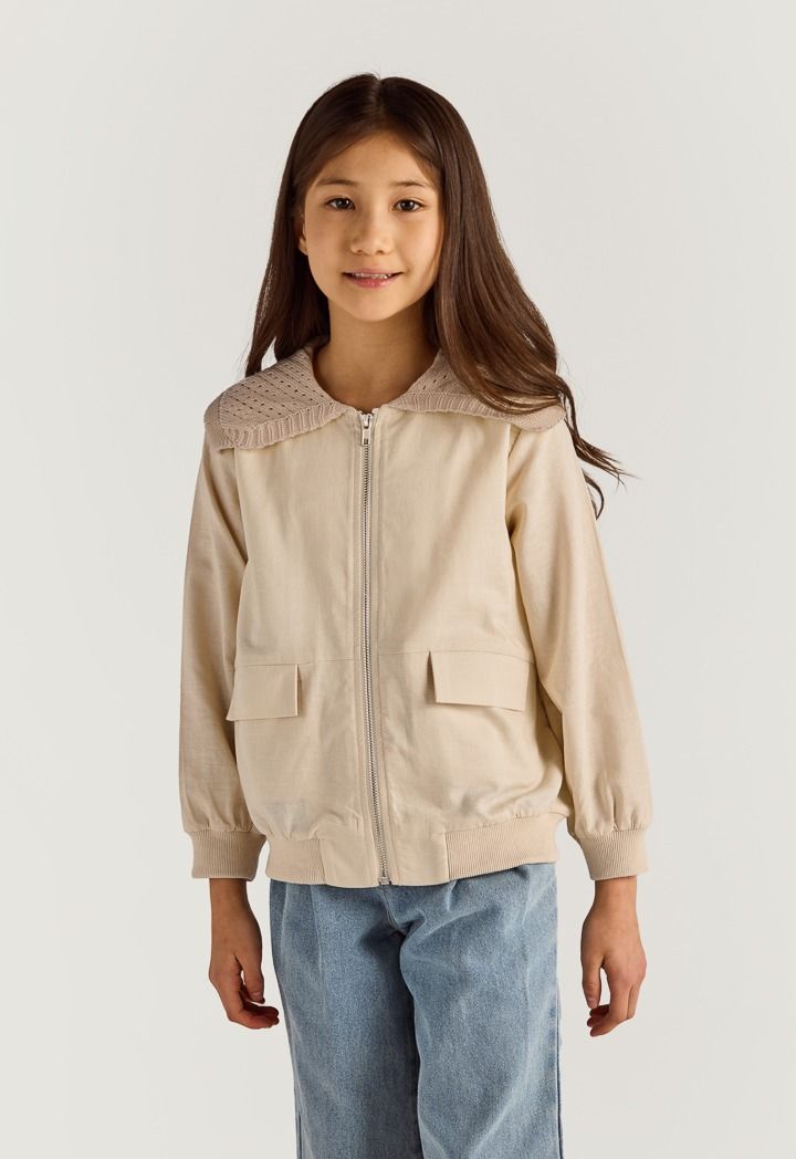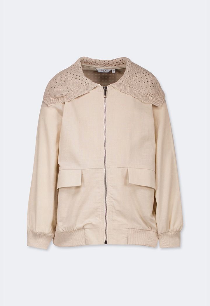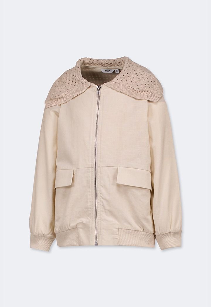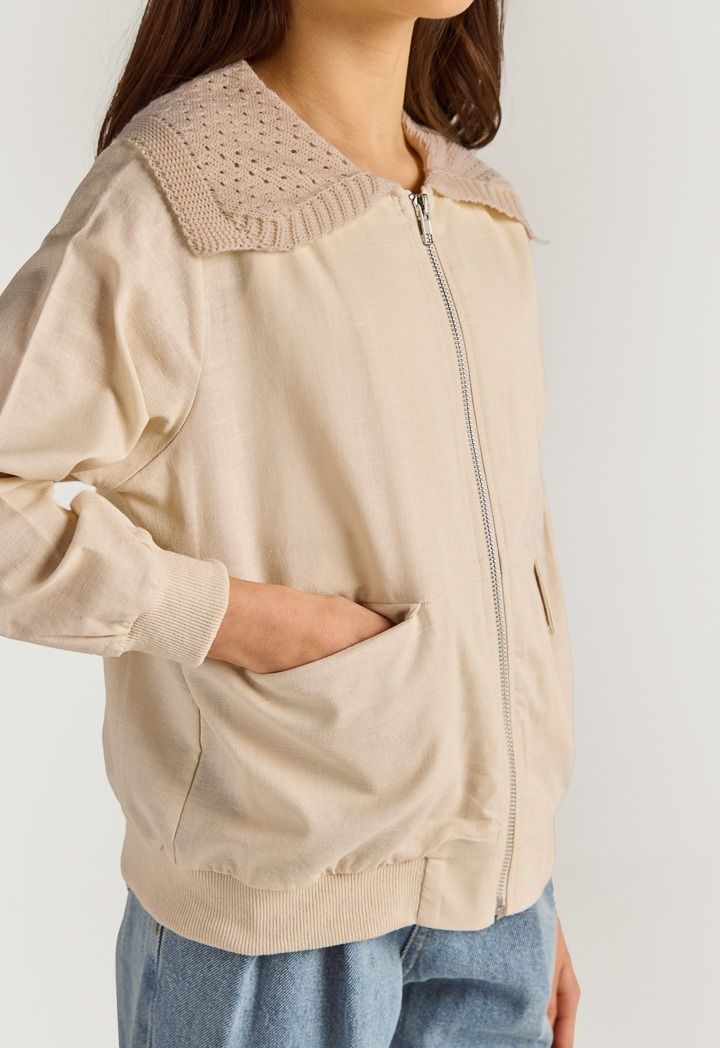 Expand your style wit this jacket, featuring a linen design and crochet shoulders.