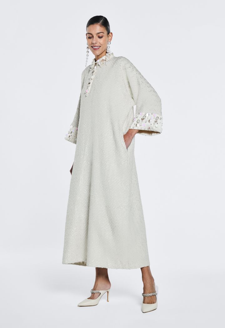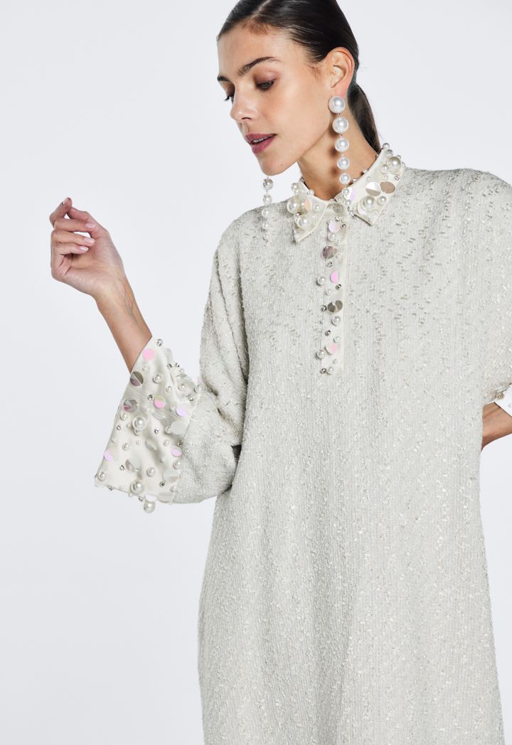 Crystal And Pearl Embellished Tweed Dress |