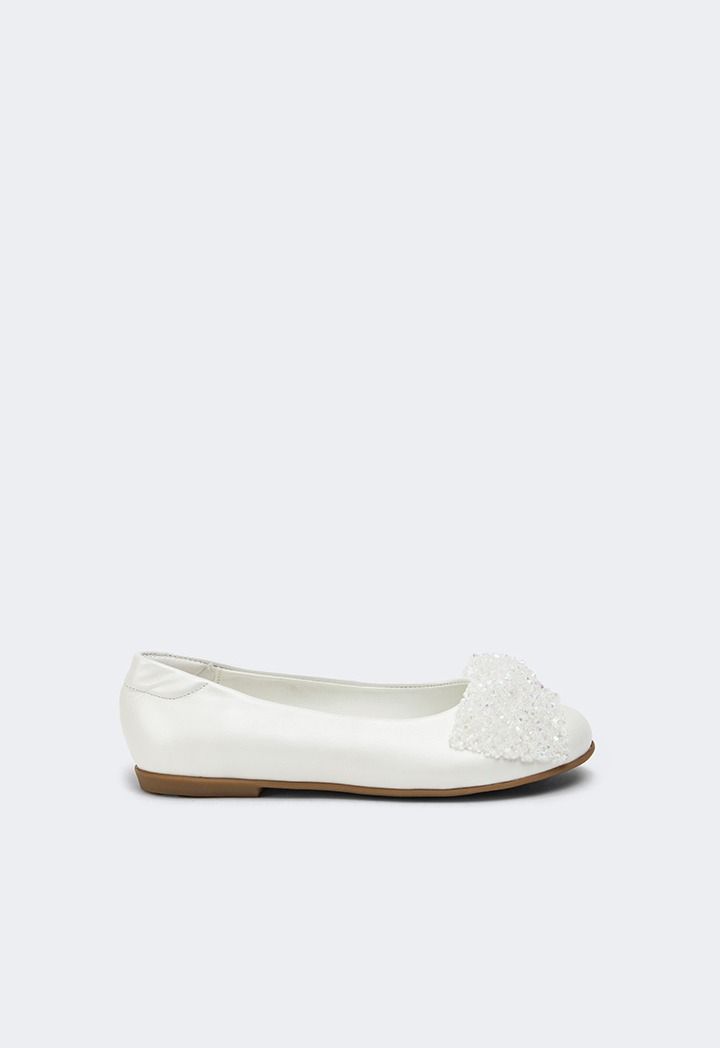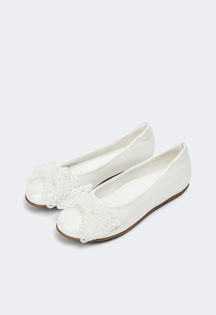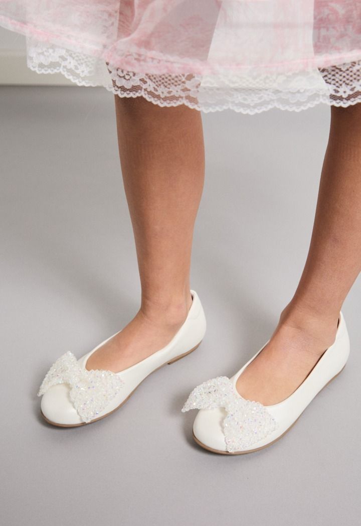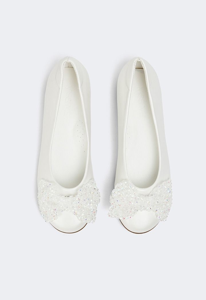 Multiply your daughters collection of shoes with this pair of crystal beaded bow embellished flat ballerinas.