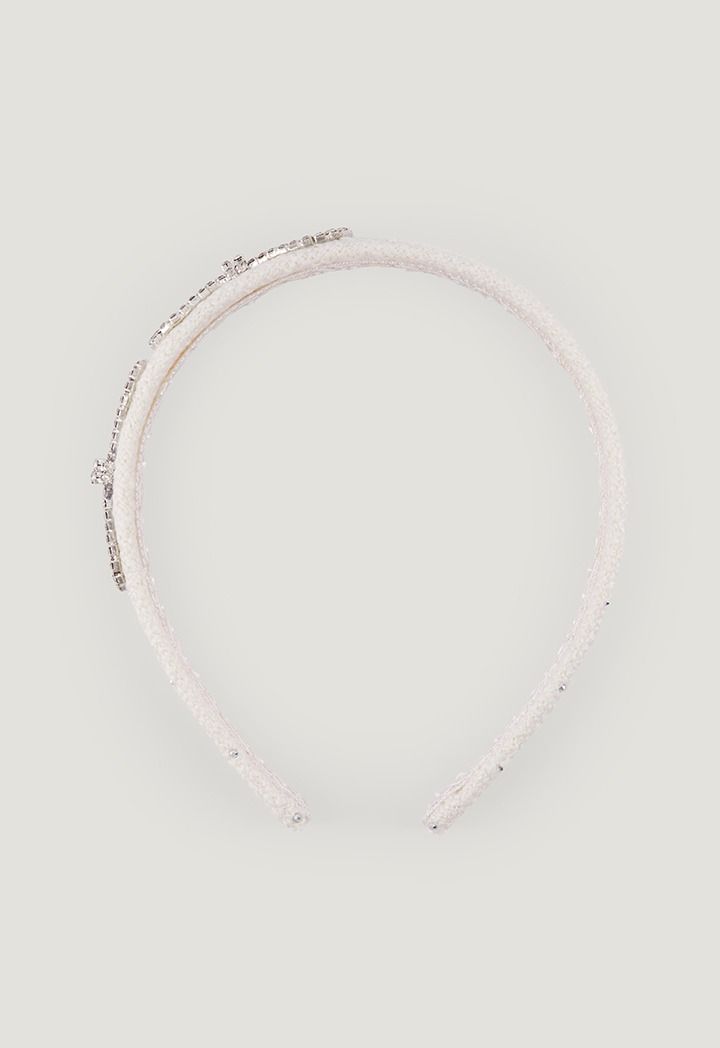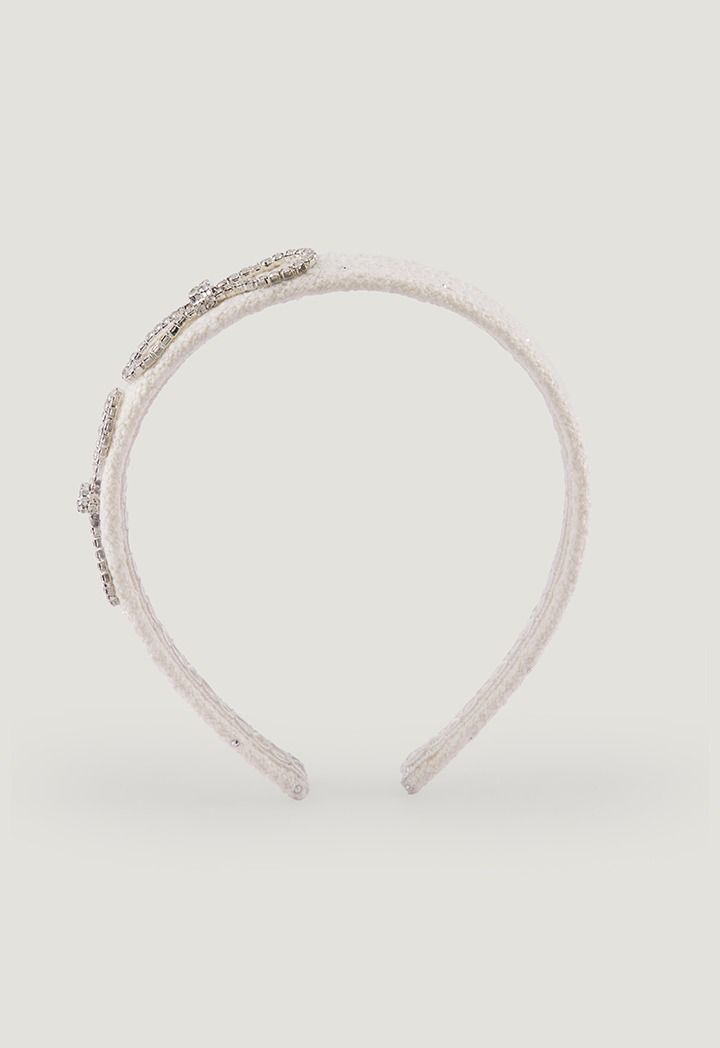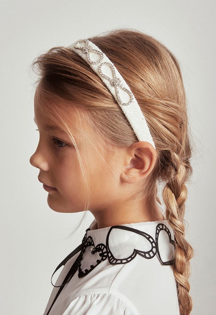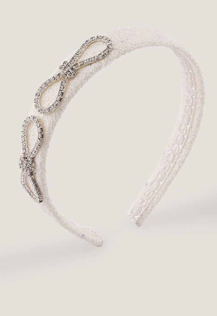 Soft headband with crystal-embellished bow drapes-delicate sparkle and romantic charm for effortless princess magic.