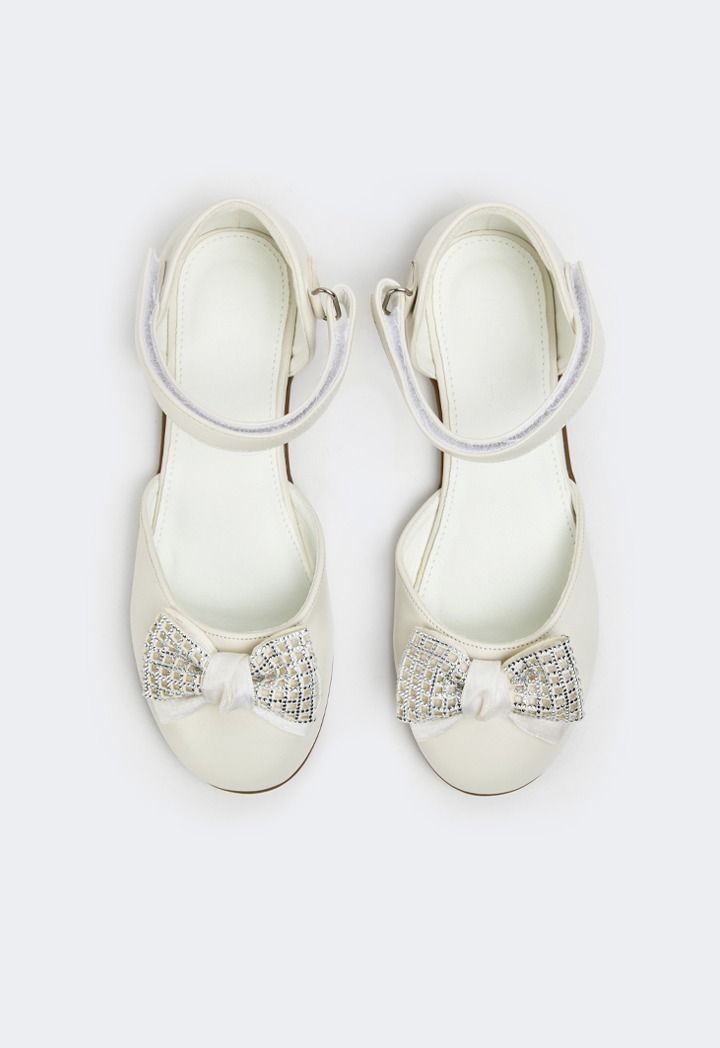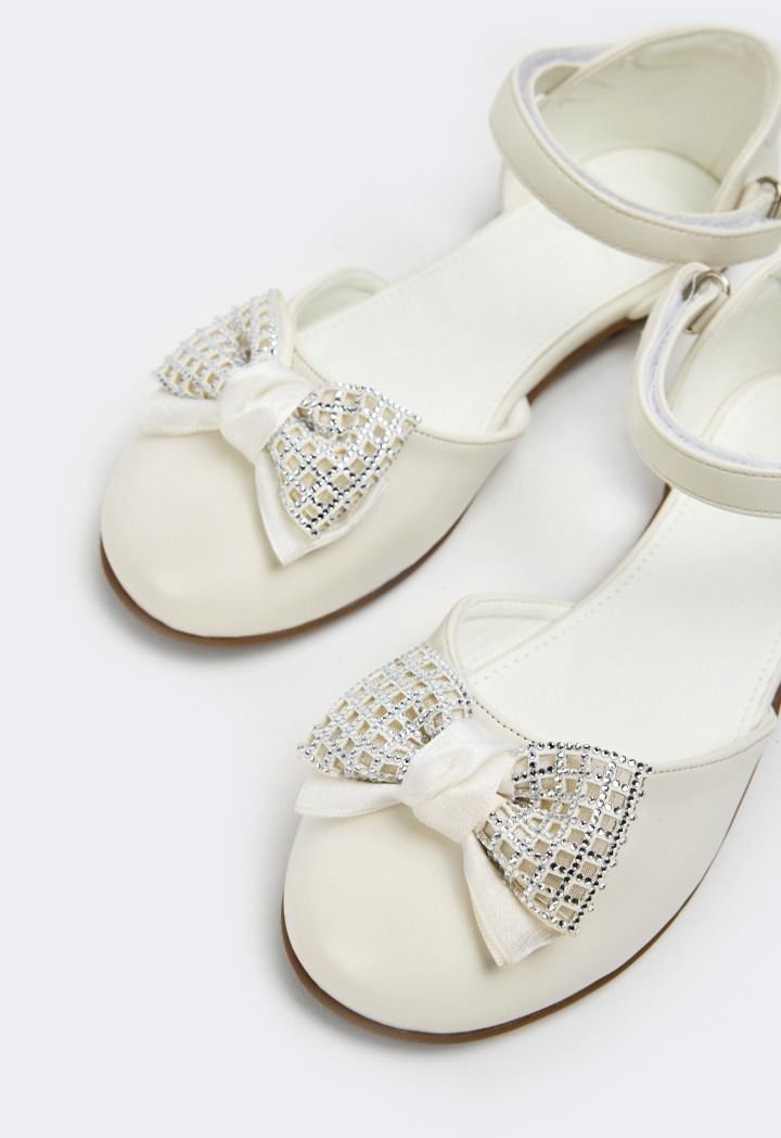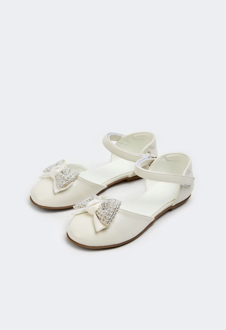 Crystal Bow Flat Strap Shoes |