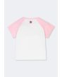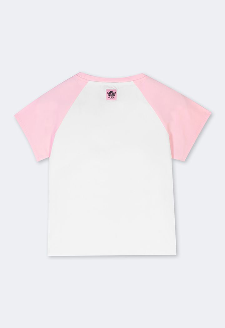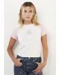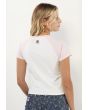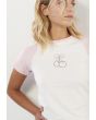 A sparkling two toned t shirt that features a crystal embellished design and short sleeves.