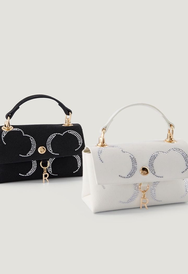 Shimmering crystals with top handle and "R" charm-a luxe mini bag for little fashion queens runway dreams