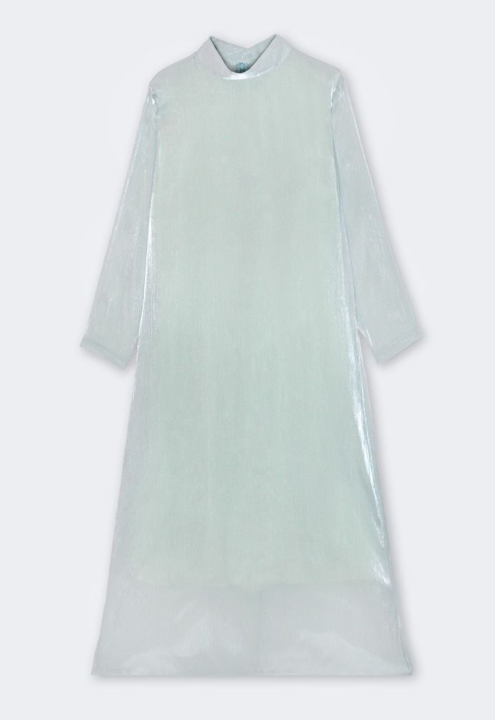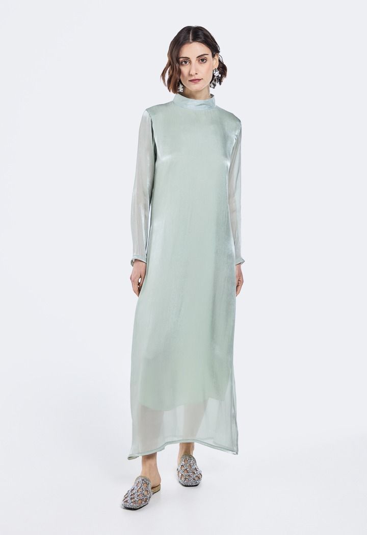 Design: Solid, Metallic, Attached Lining, Crystal Embellished, Long Sleeves Inner Dress