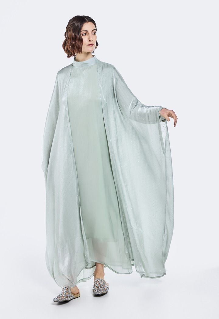 Comfy designed abaya and dress set with a touch of crystal to impress everyone .
