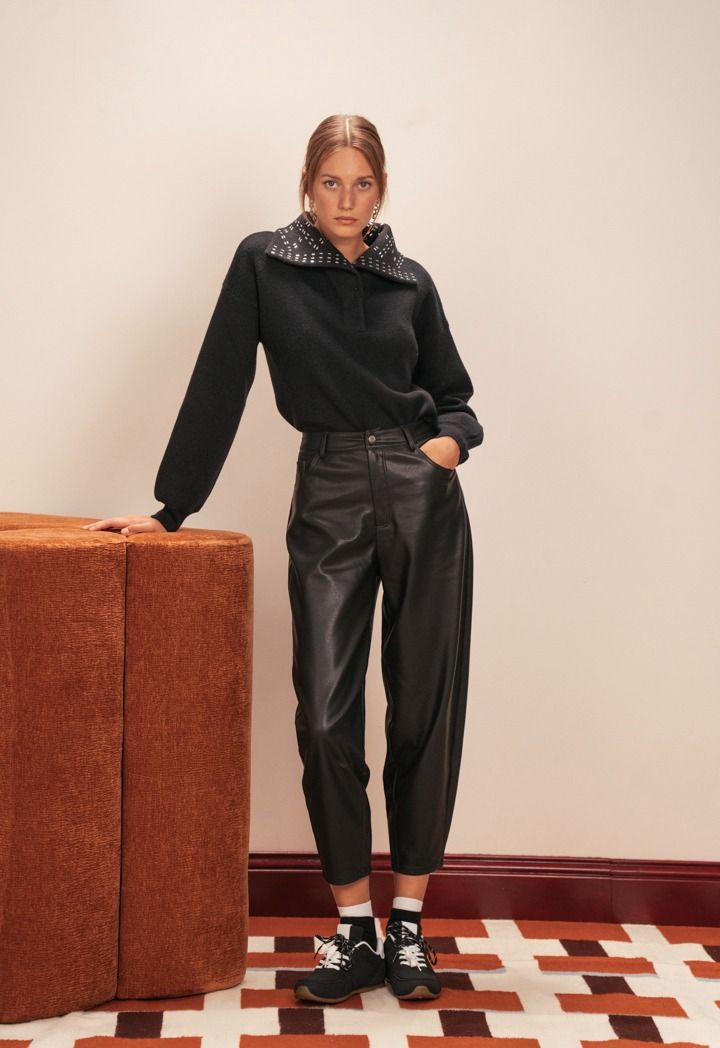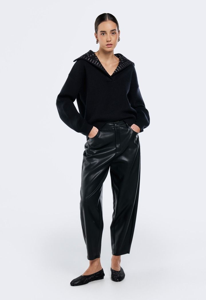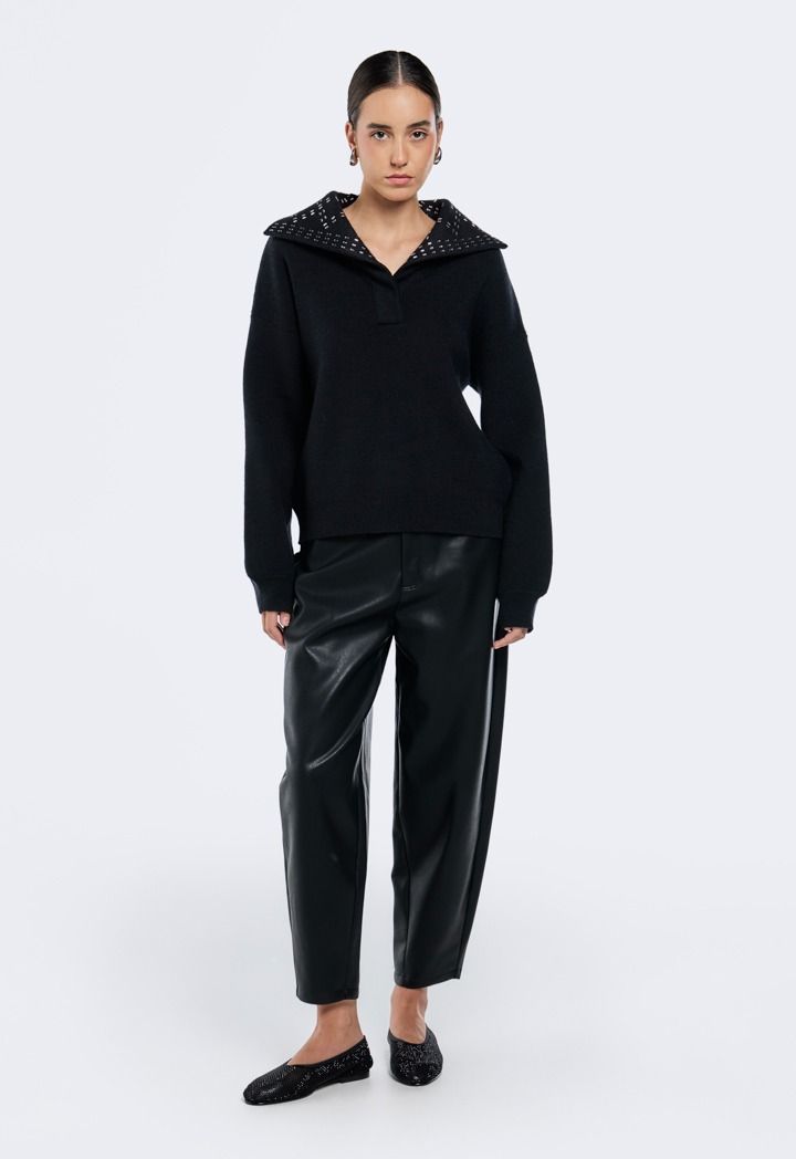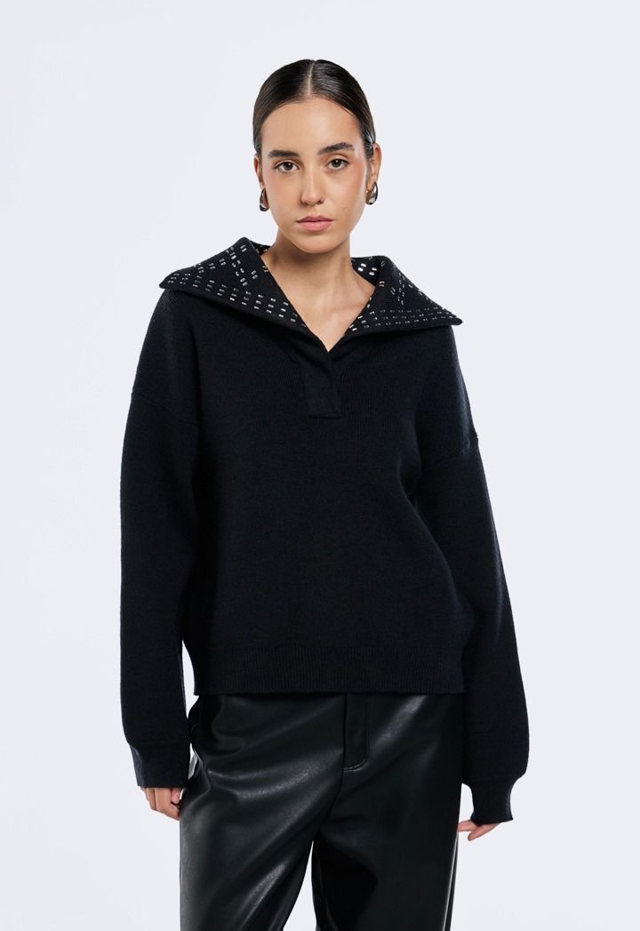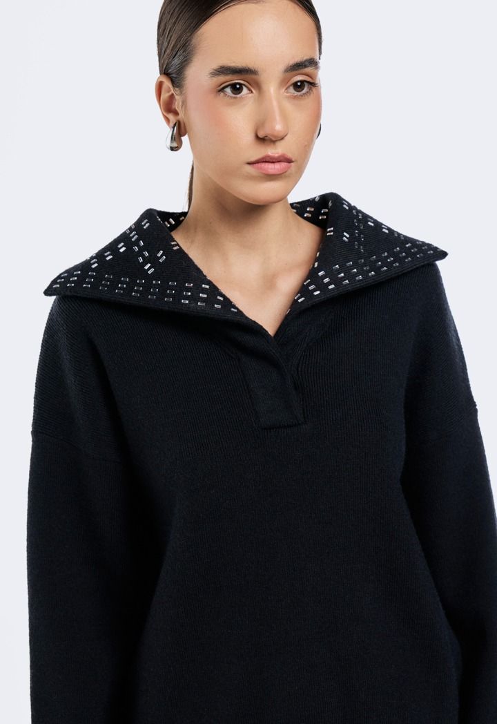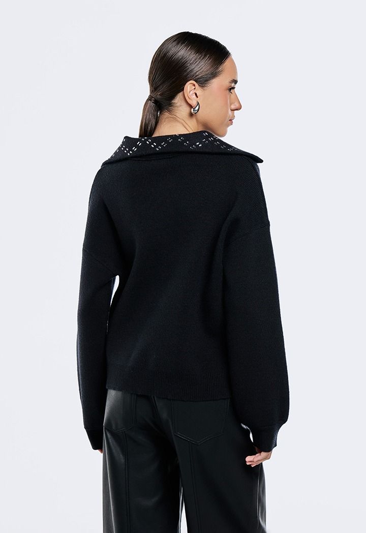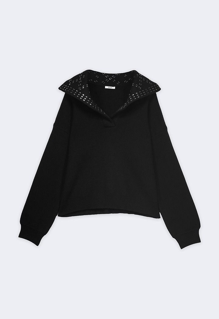 Crystal Embellished Collar Sweater |