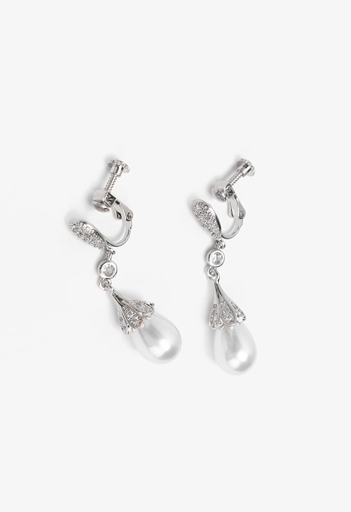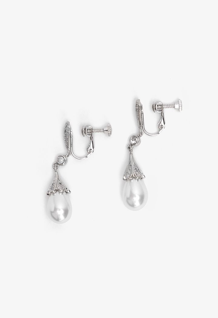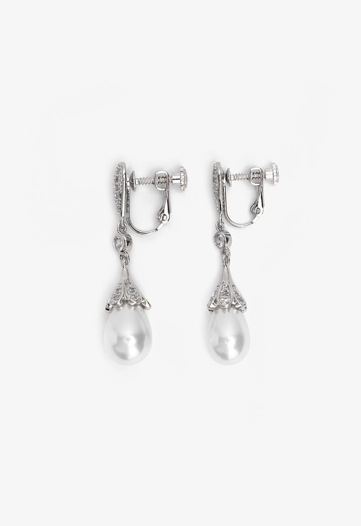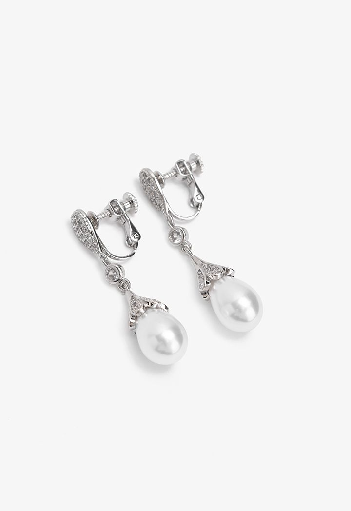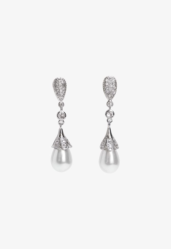 Crystal Embellished Faux Pearls Drop Earrings |