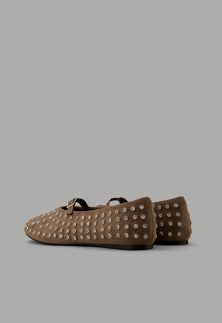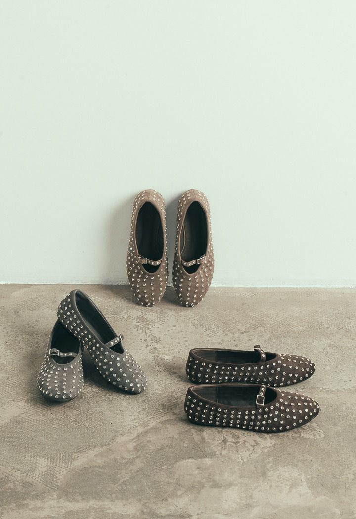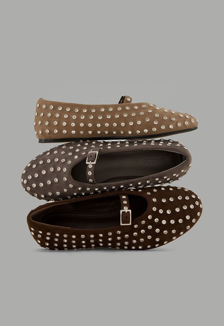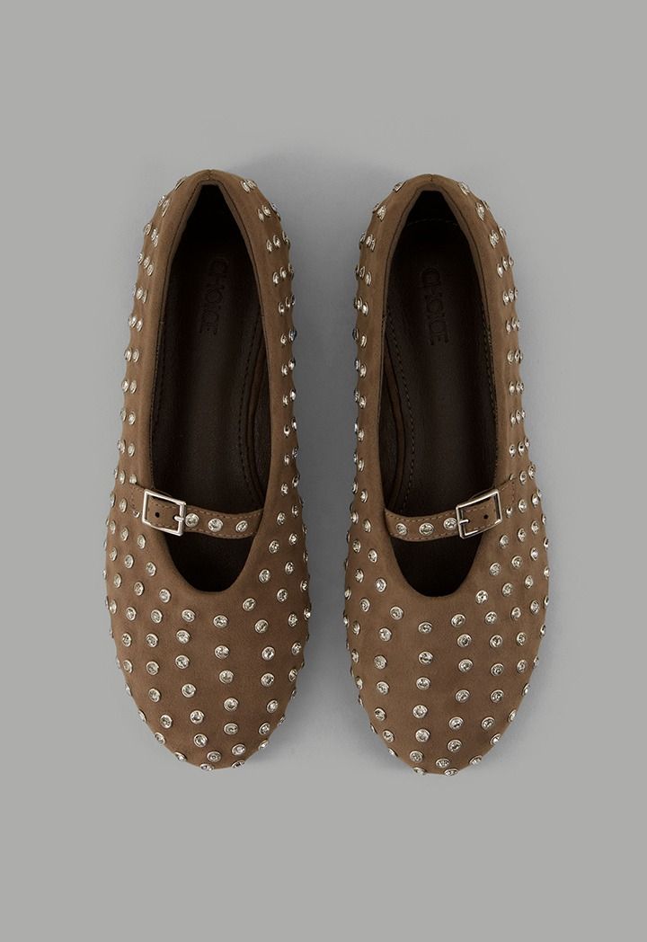 These ballet flats from are embellished with silver-ringed crystals, the black design is made from PU leather with buckled straps.