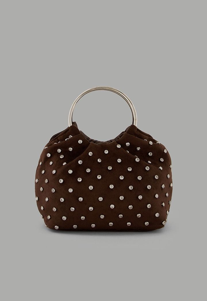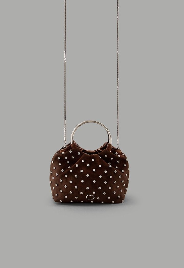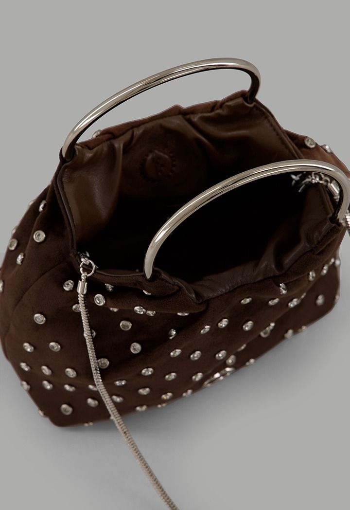 Design : Crystal Embellished, Suede, PU Leather, Top Handle, Shoulder Chain