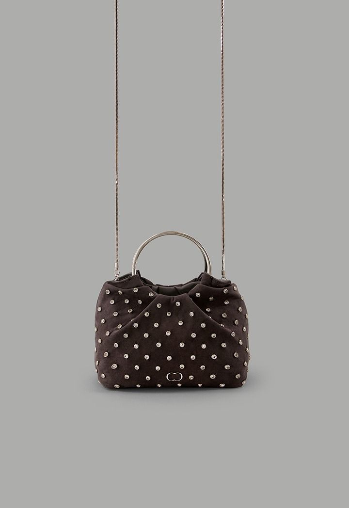 Design : Crystal Embellished, Suede, PU Leather, Top Handle, Shoulder Chain