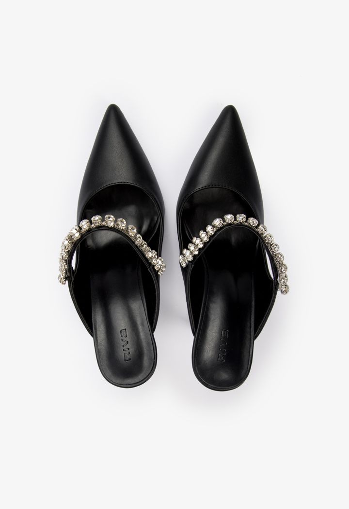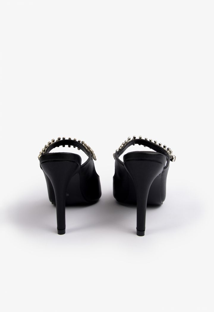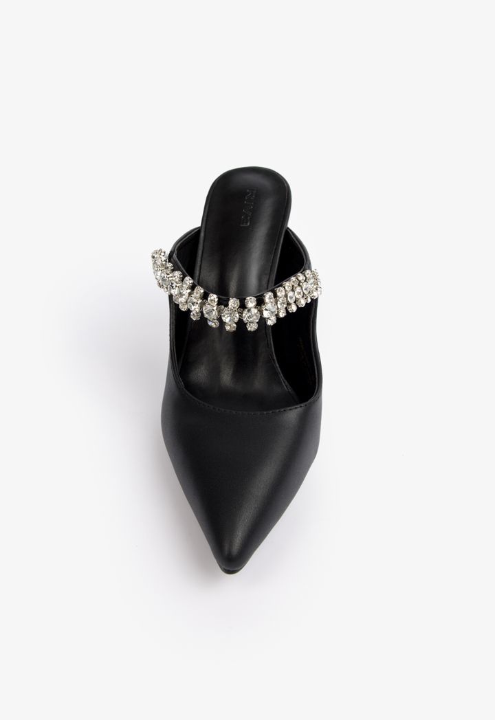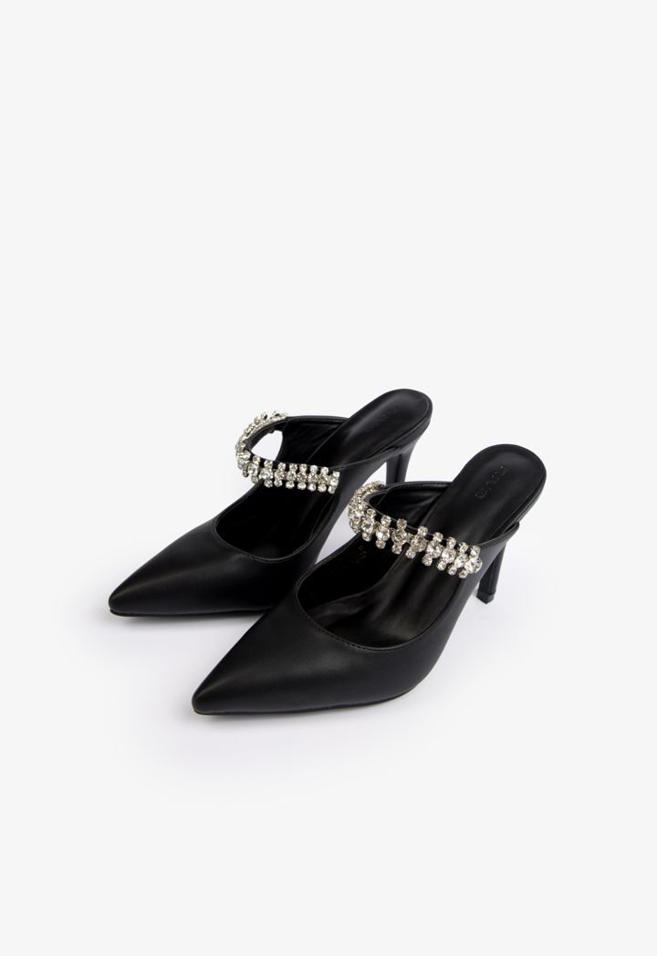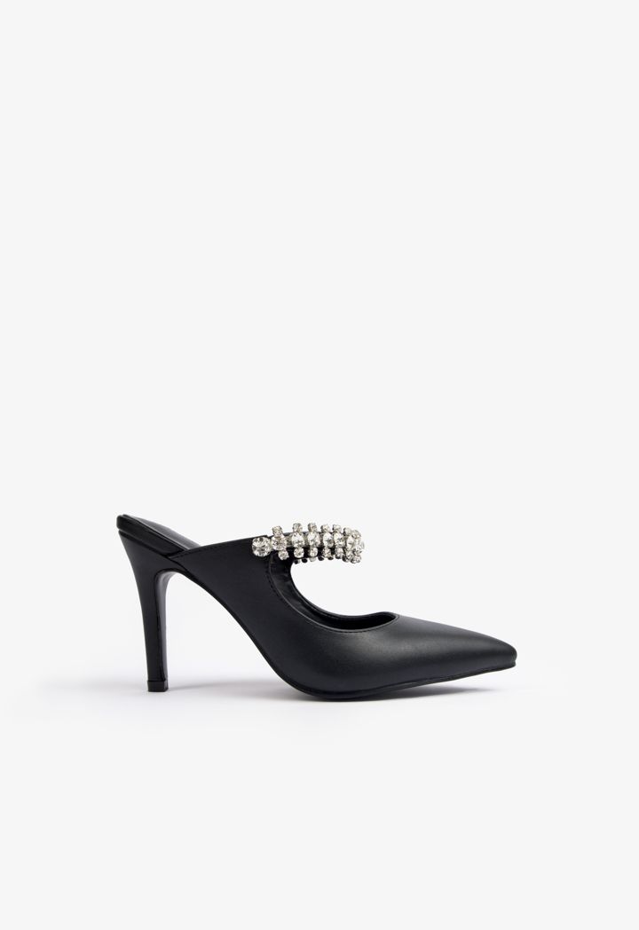 This pointed design is made from durable pu leather with crystal-embellished arch straps and stiletto heels, to complete any and every look you style it with.