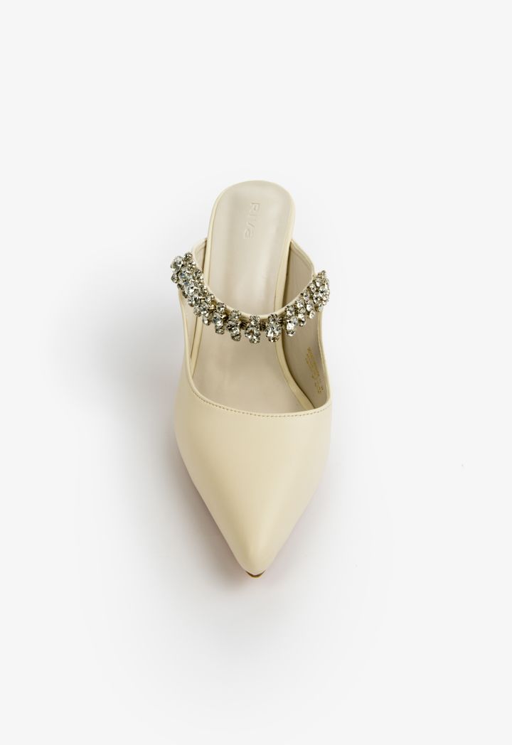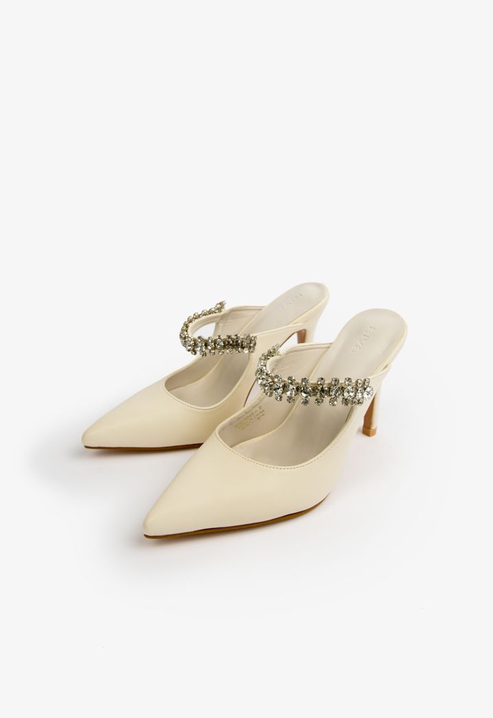 This pointed design is made from durable pu leather with crystal-embellished arch straps and stiletto heels, to complete any and every look you style it with.