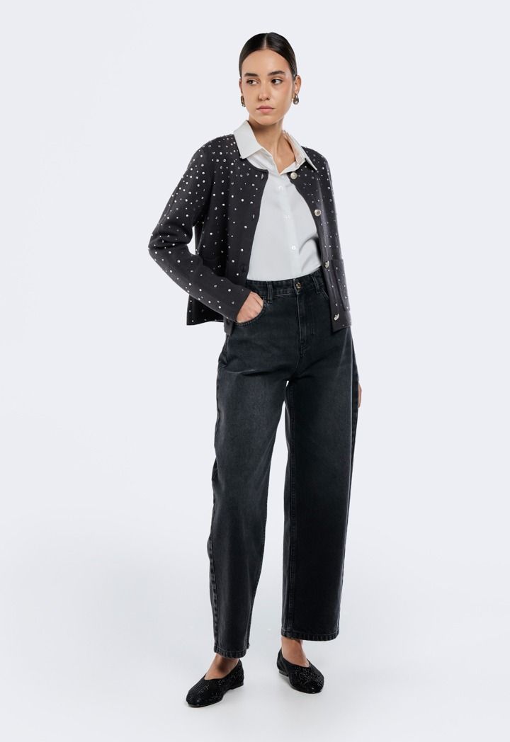Enhance your wardrobe with this chic crystal cardigan that offers both flair & comfort .