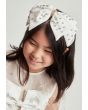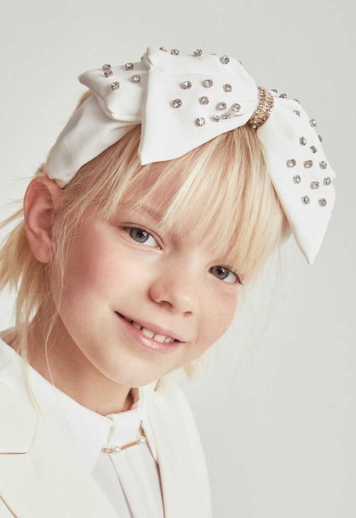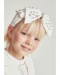 A hairband that features a crystal embellished bow with a knitted textured design.