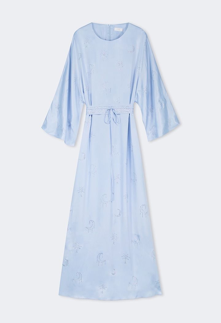 Design: Solid, Moon And Palm Tree Crystal Embellished, Attached Lining, Self Fabric Belt, Elasticated Waist