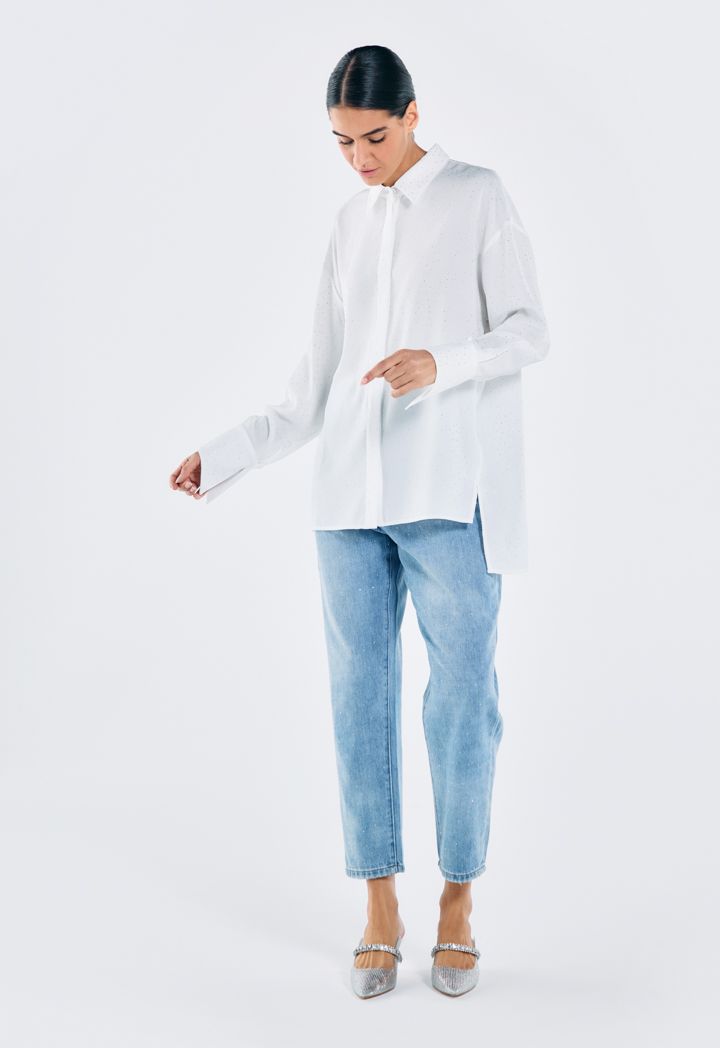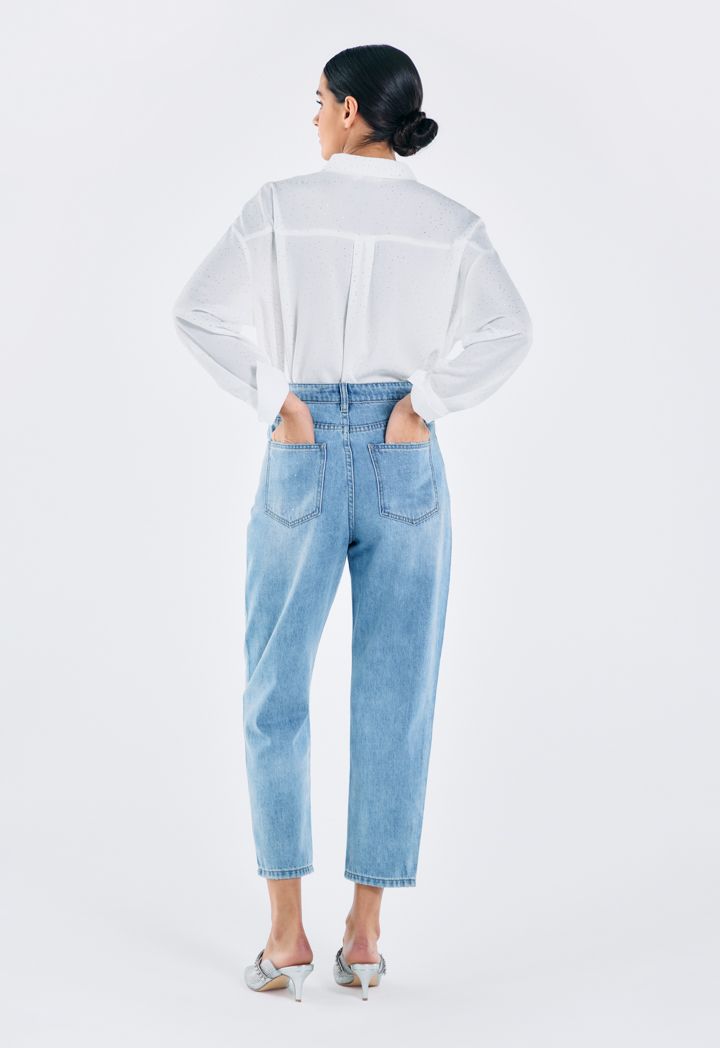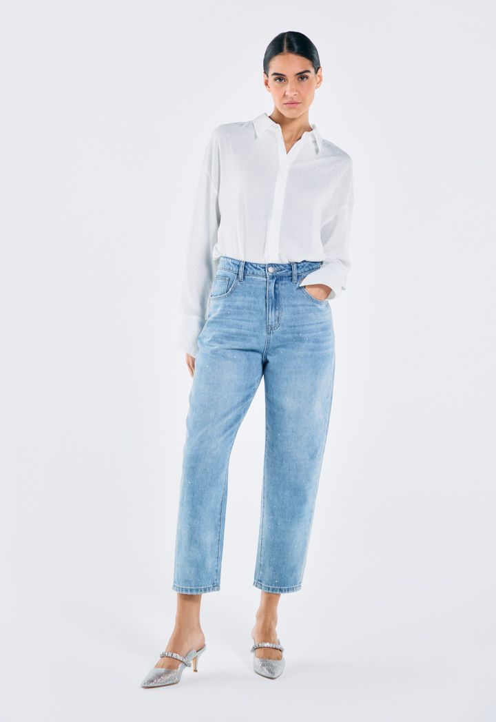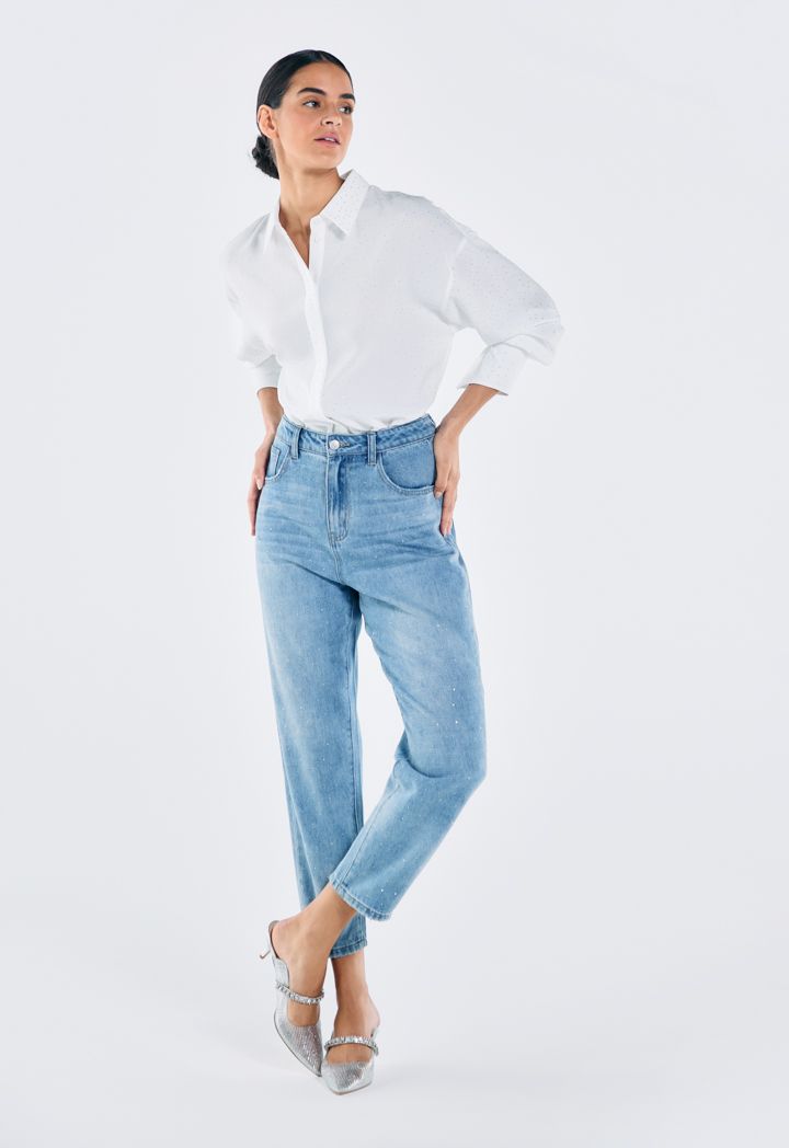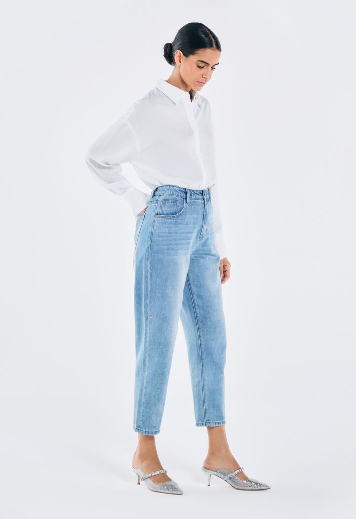 Crystal Embellished Mom Fit Jeans |