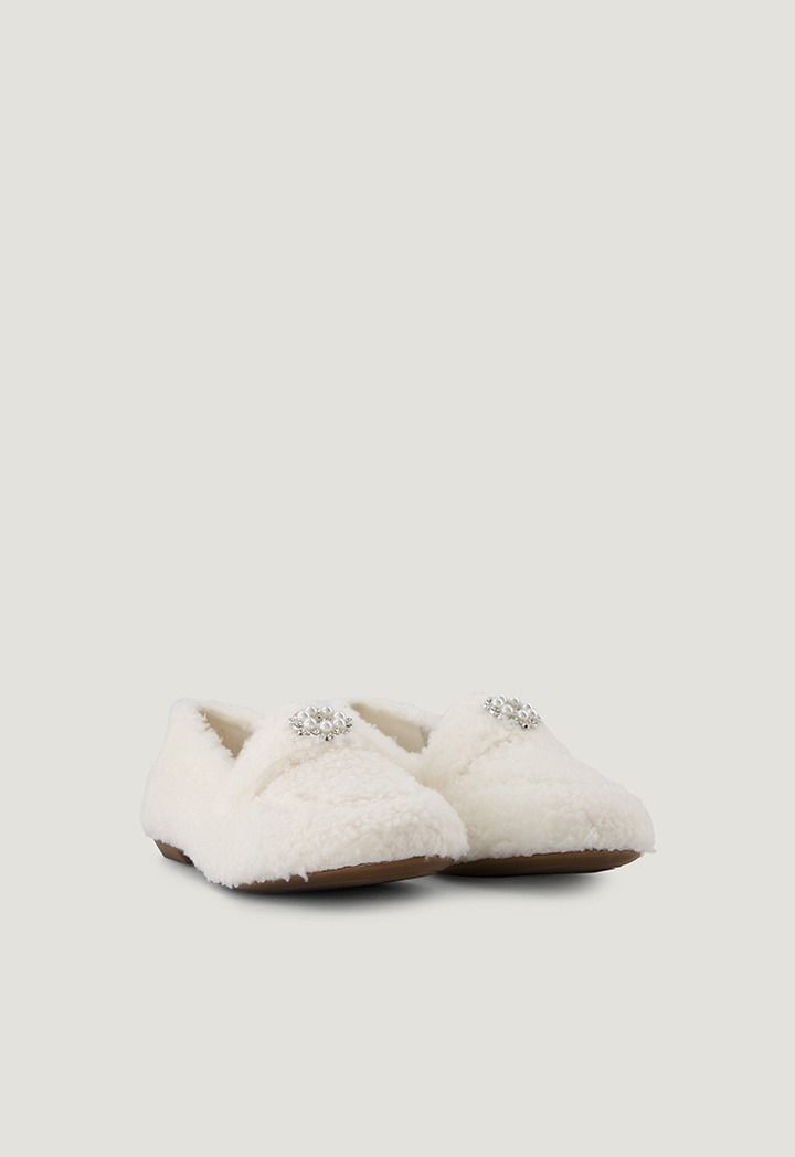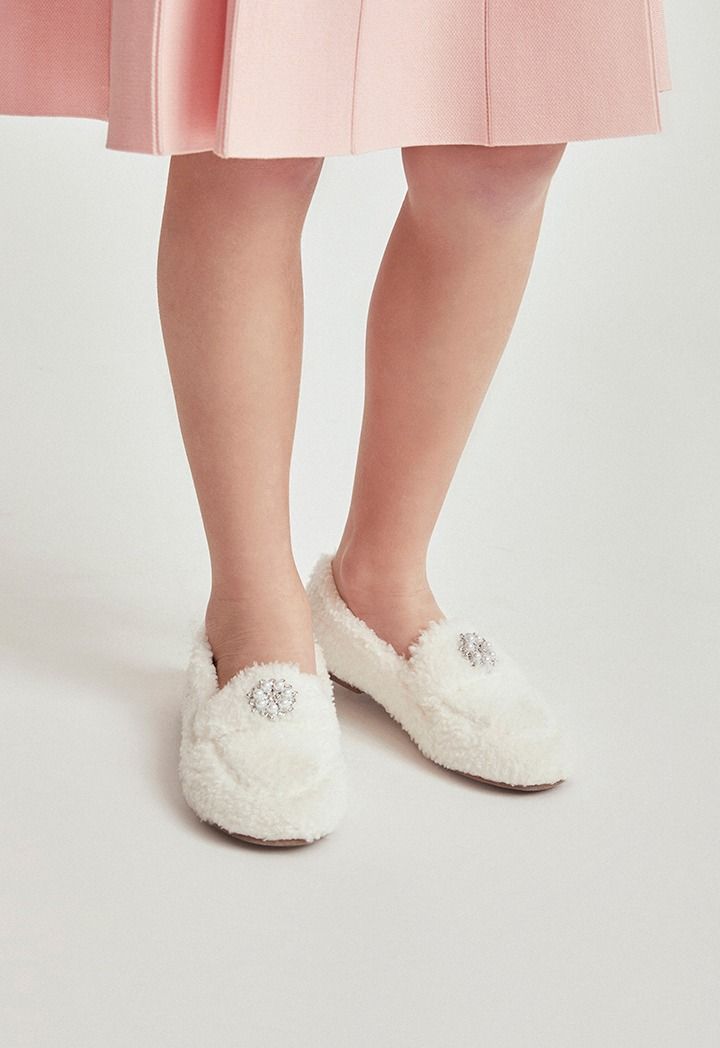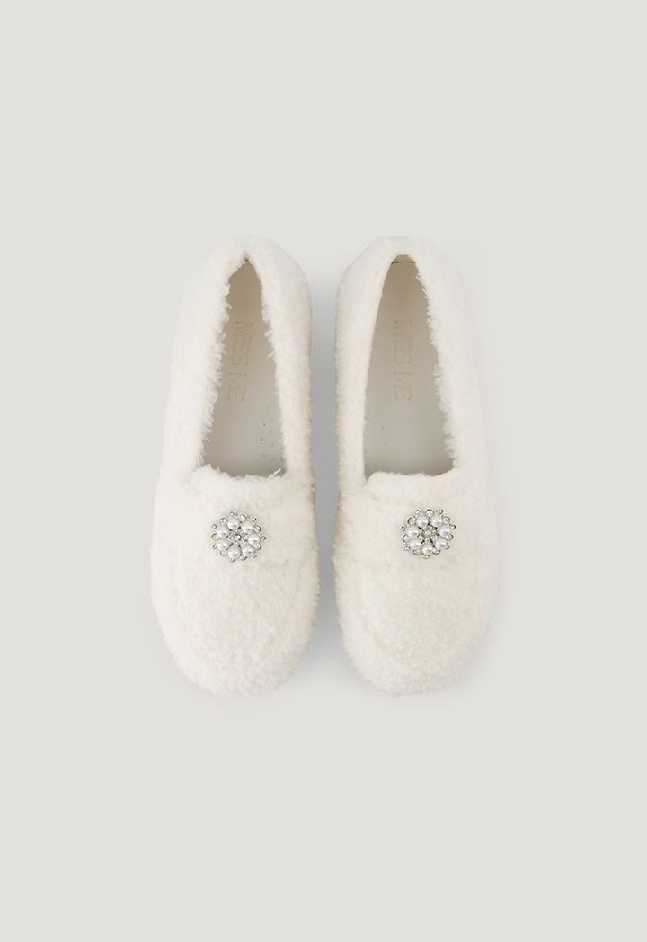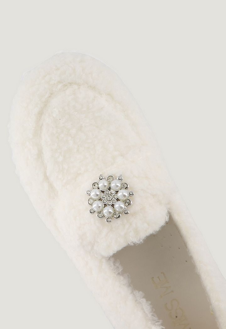 Crystal Embellished Pearl Fur Loafers |