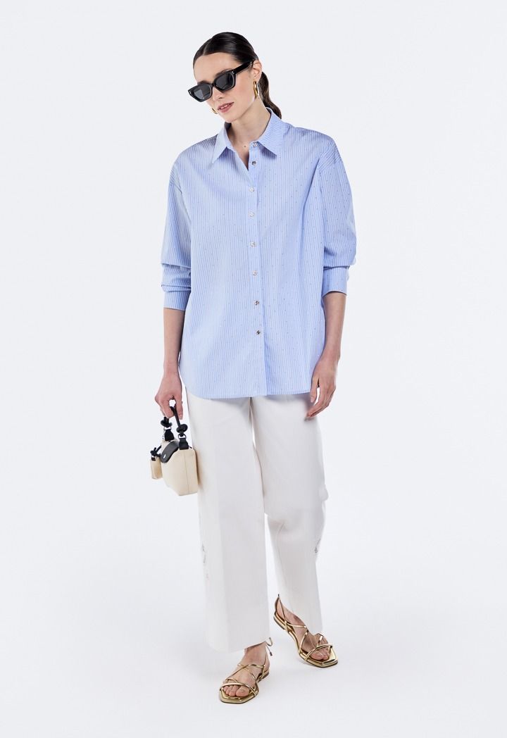 Crystal Embellished Striped Shirt |